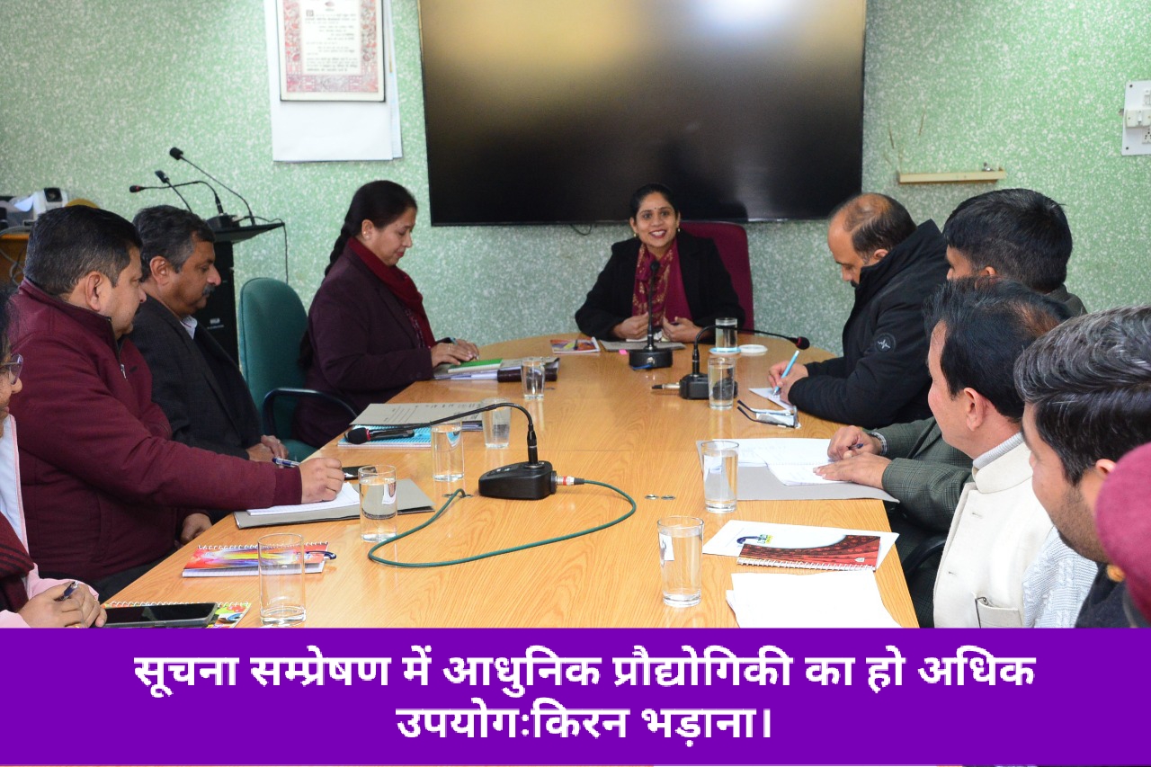 किरन भड़ाना ने कहा कि बदलते परिदृश्य के साथ इलैक्ट्रॉनिक एवं प्रिंट सहित विभिन्न सोशल मीडिया माध्यमों से सरकार की जन कल्याणकारी योजनाओं को लोगों तक पहुंचाने के लिए अधिकारी नवोन्मेषी विचारों का समावेश करें।उन्होंने कहा कि विभाग की ओर से जारी होने वाली सूचना को और अधिक प्रभावी बनाने की दिशा में भी कार्य किया जाना चाहिए।उन्होंने पारंपरिक माध्यमों के अतिरिक्त वेब आधारित मीडिया माध्यमों पर रियल टाईम में सूचनाएं सम्प्रेषित करने की दिशा में कार्य करने के भी निर्देश दिए।उन्होंने कहा कि विभागीय कार्यप्रणाली को और चुस्त-दुरूस्त करने एवं इसमें सूचना प्रौद्योगिकी तकनीकों के अधिक से अधिक उपयोग पर बल दिया जाएगा।उन्होंने कहा कि विभागीय अधिकारियों के लिए प्रशिक्षण एवं ओरिएंटेशन कार्यक्रम भी आयोजित किए जाएंगे ताकि वे मीडिया के अत्याधुनिक साधनों के बारे में पारंगत हो सकें।