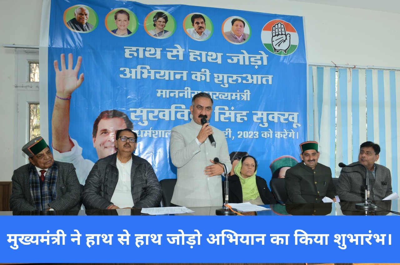मुख्यमंत्री सुखविंदर सिंह सुक्खू ने कांगड़ा जिले के धर्मशाला से राज्य स्तरीय हाथ से हाथ जोड़ो अभियान का शुभारंभ किया।इस अवसर पर सांसद एवं प्रदेश कांग्रेस अध्यक्षा प्रतिभा सिंह और अन्य कांग्रेस के नेता विशेष रूप से उपस्थित रहे।