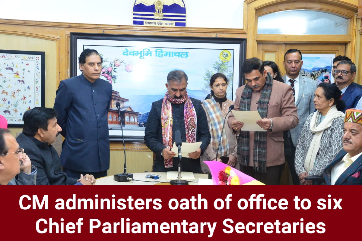 Chief Minister Sukhvider Singh Sukhu today administered oath of office and secrecy to six Chief Parliamentary Secretaries here today.
