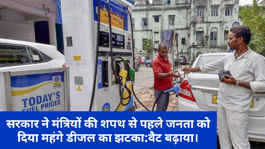 हिमाचल प्रदेश की कांग्रेस सरकार ने मंत्रियों की शपथ से पहले जनता को महंगे डीजल का झटका दे दिया है।प्रदेश में शनिवार रात से डीजल 3 रुपये प्रति लीटर महंगा हो गया है।कर एवं आबकारी विभाग ने डीजल पर लगने वाले वैट को शनिवार रात से बढ़ा दिया है।डीजल पर प्रति लीटर 4.40 रुपये लगने वाले वैट को बढ़ाकर ₹7.40 कर दिया है। शिमला में डीजल 82.92 रुपये प्रति लीटर से अब 85.93 रुपये प्रति लीटर हो गया है।