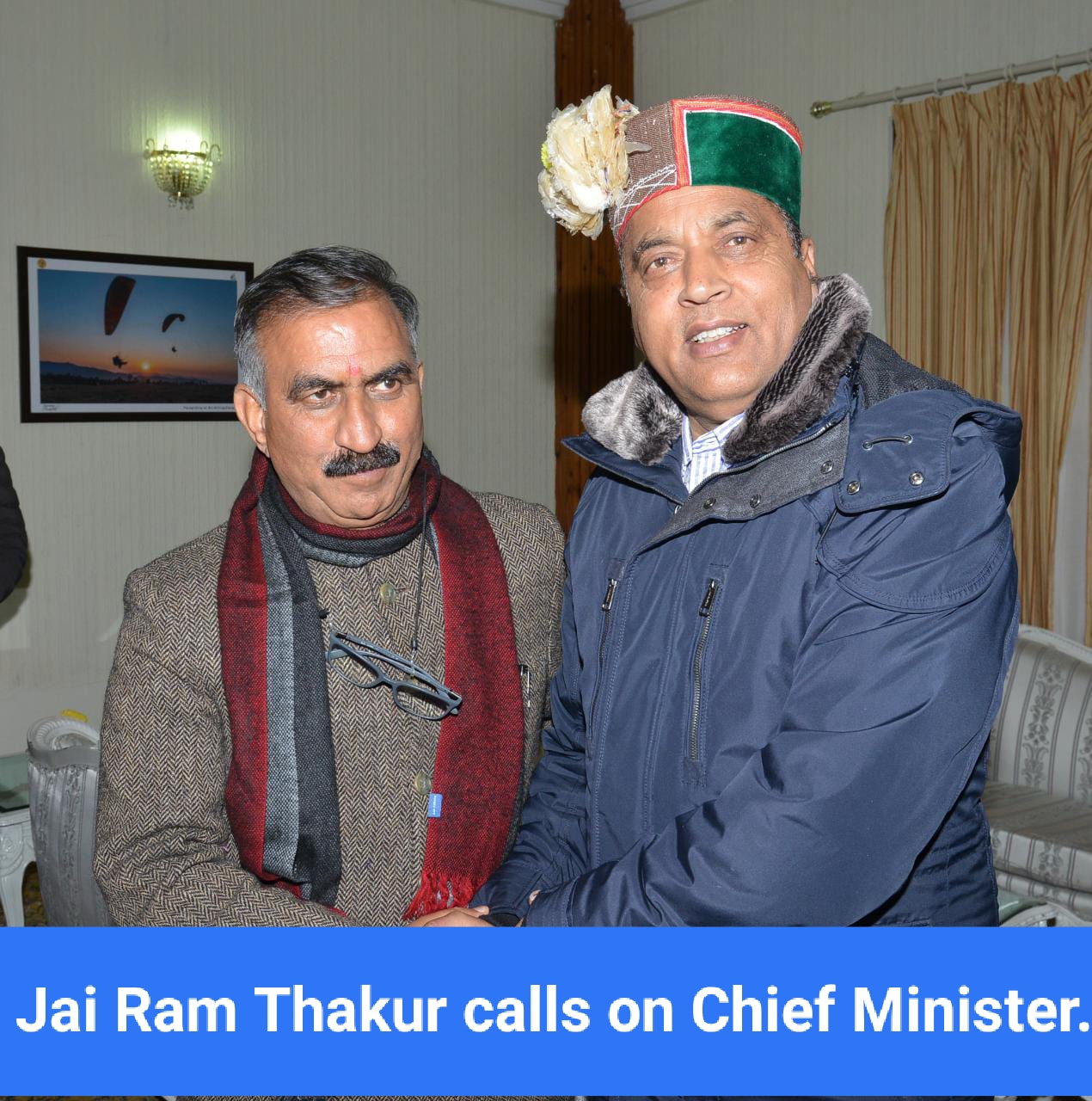 Leader of opposition and Former Chief Minister Jai Ram Thakur called on Chief Minister Sukhvinder Singh Sukhu at Peterhof today.