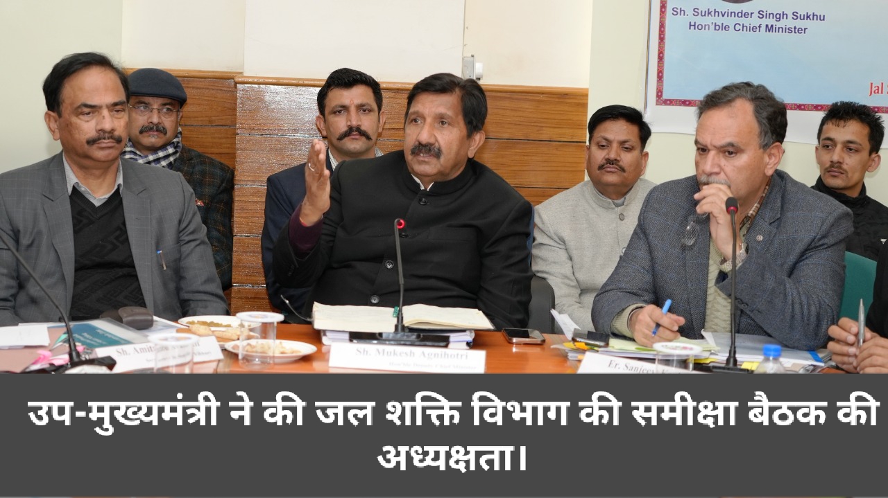 हमें जल उपयोगकर्ता से जल संरक्षण की ओर अग्रसर होना चाहिए:मुकेश अग्निहोत्री।उप-मुख्यमंत्री मुकेश अग्निहोत्री की अध्यक्षता में जल शक्ति भवन टूटीकंडी में विभाग की समीक्षा बैठक आयोजित की गई,जिसमें विभाग के वरिष्ठ अधिकारियों ने भाग लिया।इस अवसर पर मुकेश अग्निहोत्री ने कहा कि प्रदेश का सर्वांगीण विकास राज्य सरकार का मुख्य ध्येय है।उन्होंने कहा कि सभी अधिकारी पारदर्शिता,दक्षता व समयवद्धता से अपने कर्तव्य का निर्वहन सुनिश्चित करें।उन्होंने कहा कि अधिकारी प्रदेश में आमजन को 24 घंटंे स्वच्छ पेयजल उपलब्ध करवाने की दिशा में भी कार्य करें।