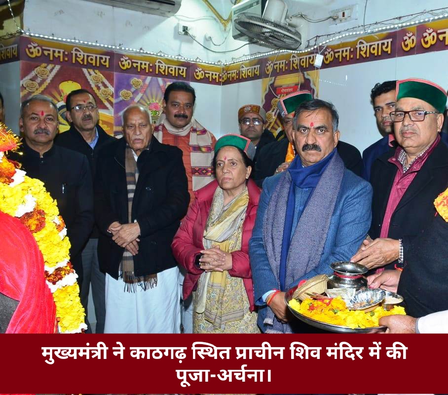 मुख्यमंत्री सुखविंदर सिंह सुक्खू ने कांगड़ा जिले के इंदौरा विधानसभा क्षेत्र में काठगढ़ स्थित प्राचीन शिव मंदिर में पूजा-अर्चना की।