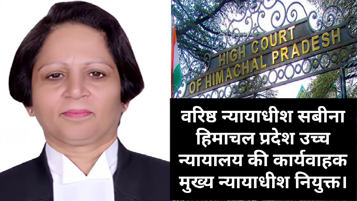 हिमाचल प्रदेश उच्च न्यायालय की वरिष्ठ न्यायाधीश सबीना को कार्यवाहक मुख्य न्यायाधीश नियुक्त किया गया है।केंद्र सरकार ने इस बारे शुक्रवार को अधिसूचना जारी की है।