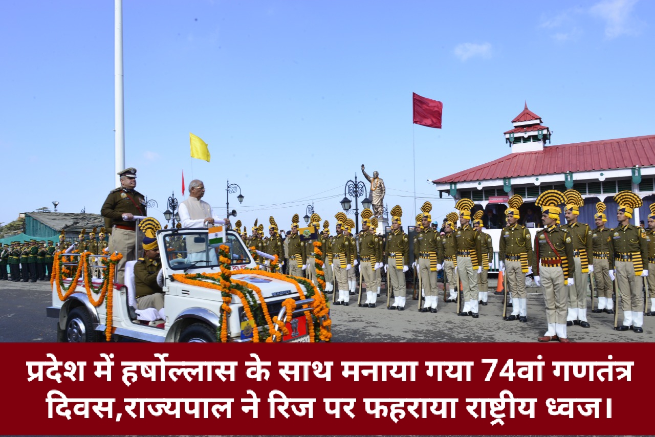 74वां गणतंत्र दिवस पूरे प्रदेश में हर्षोल्लास व उत्साह के साथ मनाया गया।राज्यपाल राजेन्द्र विश्वनाथ आर्लेकर ने शिमला के ऐतिहासिक रिज पर आयोजित राज्य स्तरीय समारोह में तिरंगा फहराया और मार्च पास्ट की सलामी ली।