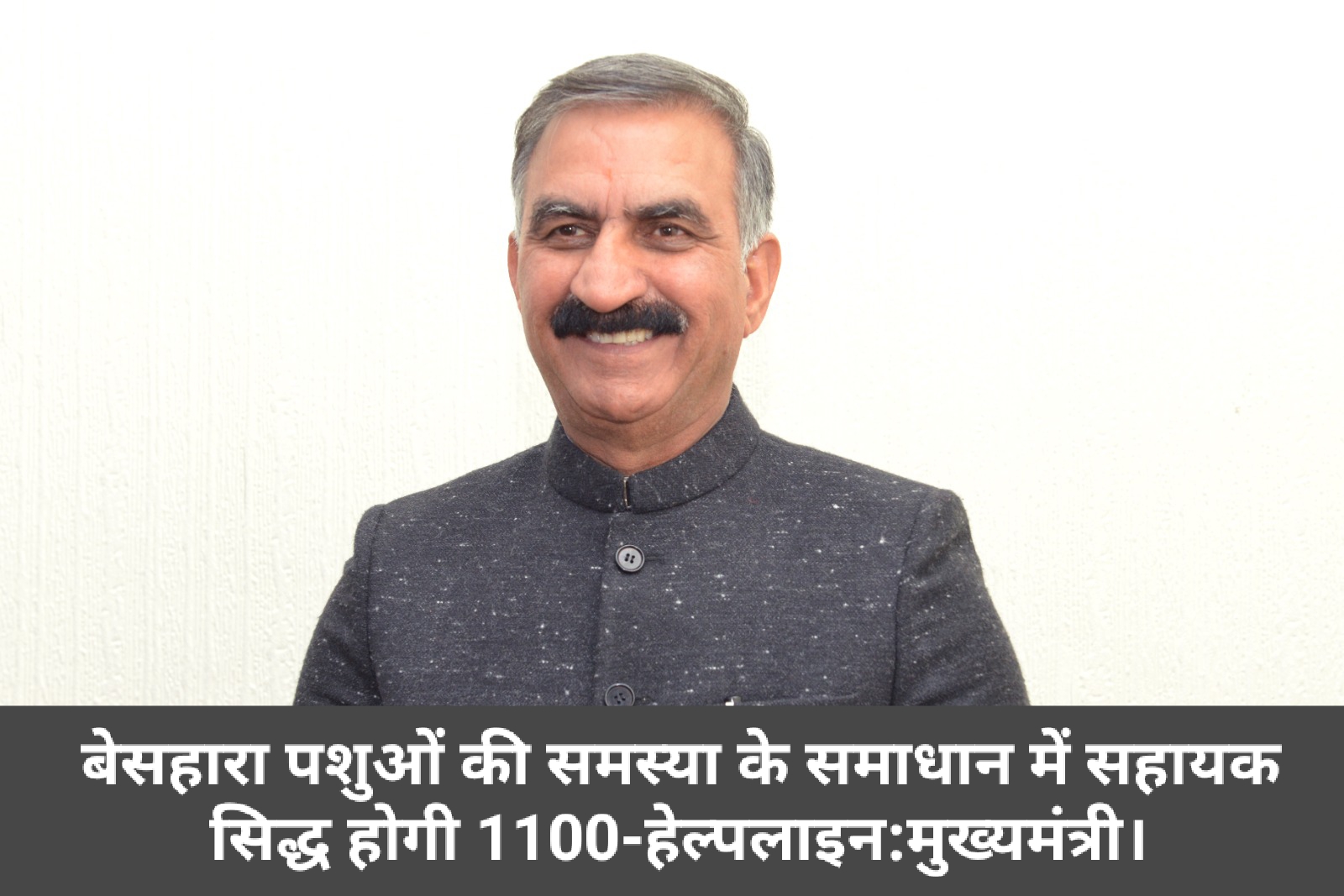 मुख्यमंत्री ठाकुर सुखविंदर सिंह सुक्खू ने स्पष्ट किया है कि बेसहारा पशुओं को आश्रय प्रदान करना प्रदेश सरकार की सर्वोच्च प्राथमिकताओं में से एक है। मुख्यमंत्री ने पशु पालन विभाग को विशेष निर्देश देते हुए कहा कि बेसहारा पशुओं से जुड़े खतरों को रोकने के लिए 1100-हेल्पलाइन में विशेष प्रणाली विकसित की जाए।ठाकुर सुखविंदर सिंह सुक्खू ने कहा कि हिमाचल प्रदेश में खेती के प्रति किसानों का रुझान कम होने और सड़क दुर्घटनाओं का एक बड़ा कारण बेसहारा पशु भी हैं।बेसहारा पशुओं को आश्रय की बेहतर सुविधाएं उपलब्ध करवाने से इन दोनों समस्याओं का समाधान सुनिश्चित होगा और किसान खेतों की ओर रुख करेंगे जिससे उनकी आर्थिकी में बढ़ोतरी होगी।1100-हेल्पलाइन की नई पहल के अंतर्गत शिकायत दर्ज करने पर यह जानकारी विभाग के संबंधित खंड के पशु अधिकारियों के साथ साझा की जाएगी जो बेसहारा पशुओं को आश्रय और चारे का प्रबंधन करने के लिए जिम्मेदार होंगे।पशु पालन विभाग,वन विभाग के साथ समन्वय स्थापित कर वर्तमान गोशाला और गो-अभयारण्यों के लिए चरागाह चिन्हित करेंगे जिससे इन पशुओं के लिए चारे और पानी की पर्याप्त व्यवस्था उपलब्ध होगी।