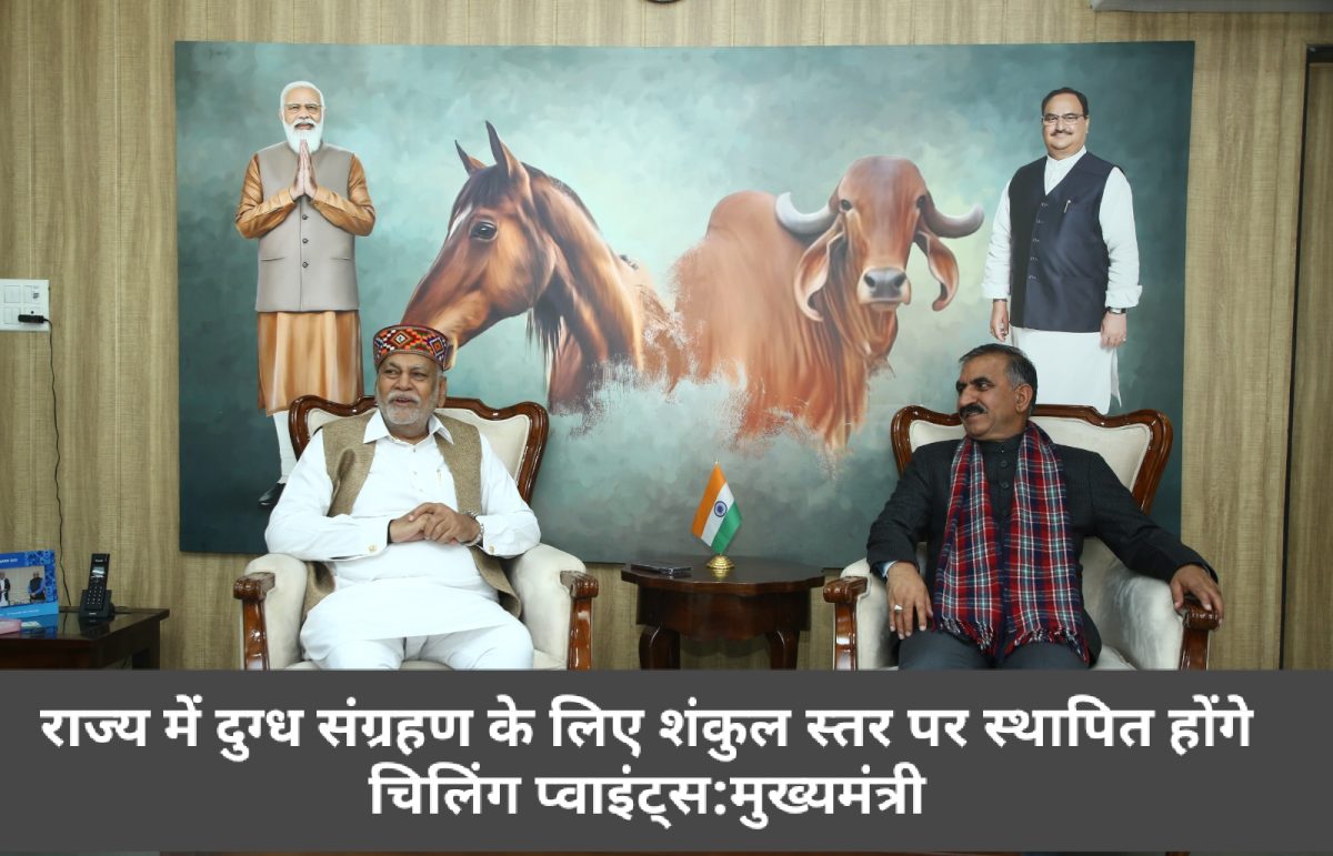 ठाकुर सुखविंदर सिंह सुक्खू ने केंद्रीय मंत्री से राज्य के लिए अभिशीतन,परिवहन और डेयरी उत्पादों से संबंधित एक समग्र डेयरी परियोजना का आग्रह किया।मुख्यमंत्री ने कहा कि गांवों में दुग्ध एकत्रीकरण के बाद शंकुल (क्लस्टर) स्तर पर चिलिंग प्वाइंट स्थापित किये जायेंगे।इन चिलिंग प्वाइंट्स से प्रशितित (रेफ्रिजरेटिड) दुग्ध वाहन के माध्यम से दूध को जिला स्तर पर स्थापित मुख्य संयंत्र तक पहुंचाया जाएगा।