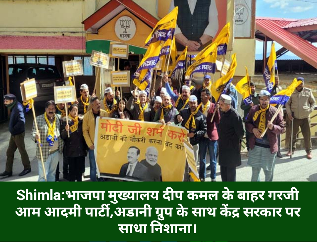 शिमला:आम आदमी पार्टी ने रविवार को शिमला के चक्कर स्थित प्रदेश भाजपा मुख्यालय दीपकमल के बाहर धरना-प्रदर्शन किया।इसकी अध्यक्षता पार्टी प्रदेशाध्यक्ष सुरजीत ठाकुर ने की।