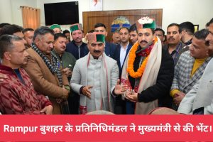 रामपुर बुशहर के एक प्रतिनिधिमंडल ने लोक निर्माण तथा युवा सेवाएं एवं खेल मंत्री विक्रमादित्य सिंह की अध्यक्षता में मुख्यमंत्री ठाकुर सुखविंदर सिंह सुक्खू से भेंट की।प्रतिनिधिमंडल ने मुख्यमंत्री को क्षेत्र की विभिन्न विकासात्मक मांगों से अवगत करवाया।
