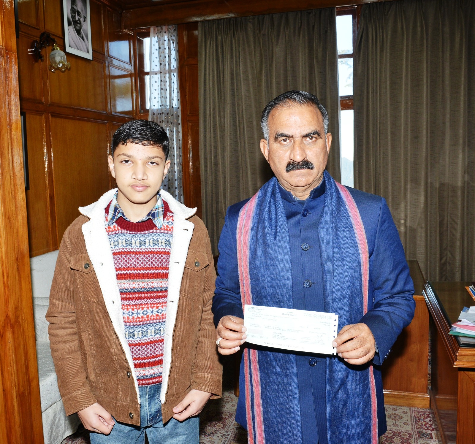 मुख्यमंत्री ठाकुर सुखविंदर सिंह सुक्खू को 9वीं कक्षा के एक छात्र ने मुख्यमंत्री सुख-आश्रय सहायता कोष के लिए 11 हजार रुपये का अंशदान दिया।