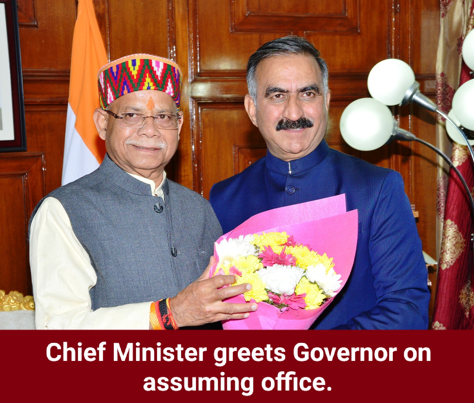 Chief Minister Thakur Sukhvinder Singh Sukhu and Deputy Chief Minister Mukesh Agnihotri greeted Shiv Pratap Shukla on assuming the office of Governor of Himachal Pradesh here today.