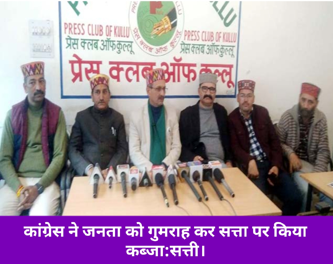 कांग्रेस ने सत्ता में आते ही जनता विरोधी निर्णय लेते हुए 3 रुपए प्रति लीटर डीजल के दाम बढ़ा दिए। इसके साथ ही सत्ता में आने से पहले ऐसी घोषणाएं कर रखी हैं,अब इन गारंटियों से नेता भाग रहे हैं।यह बात कुल्लू में भाजपा के पूर्व अध्यक्ष सतपाल सत्ती ने प्रैसवार्ता के दौरान कही।उन्होंने कहा कि कांग्रेस सरकार ने प्रदेशभर में 600 से अधिक संस्थानों को बंद करके जनता को परेशान करने का काम किया है। जिसके विरोध में भाजपा द्वारा प्रदेश भर में हस्ताक्षर अभियान चलाया जा रहा है।इन हस्ताक्षरों को राज्यपाल को सौंपा जाएगा।सत्ती ने कहा कि सरकार द्वारा कैबिनेट में भी कई जिले व स्थानों को नजरअंदाज किया गया।यह सरकार मजबूरी में चल रही है,वहीं हिमकेयर योजना का भी लोगों को फायदा नहीं मिल रहा है।उन्होंने कहा कि महिलाओं को कहा गया था कि एक महिला को 1500 जबकि 2 को 3000 रुपए मिलेंगे,अब वे इंतजार कर रहे हैं कि आखिर वे पैसे कब मिलेंगे।उन्होंने कहा कि कांग्रेस ने जनता को गुमराह कर सत्ता पर कब्जा किया है। पत्रकार वार्ता के दौरान सत्ती ने वर्तमान कांग्रेस सरकार पर चौतरफा हमला बोला।इस मौके पर पूर्व मंत्री गोविंद सिंह ठाकुर व भाजपा जिलाध्यक्ष भीमसेन शर्मा सहित अन्य पदाधिकारी उपस्थित रहे।