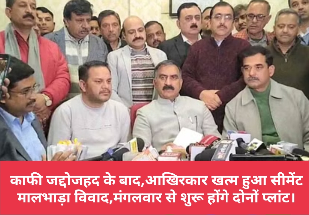 अदाणी कंपनी के साथ चल रहा सीमेंट मालभाड़ा विवाद आखिरकार खत्म हो गया है।सोमवार को सचिवालय में मुख्यमंत्री सुखविंद्र सिंह सुक्खू की कंपनी प्रबंधन,दाड़लाघाट और बरमाणा के ट्रक मालिकों के साथ हुई वार्ता में मालभाड़े पर सहमति बन गई है।वार्ता के बाद मुख्यमंत्री सुखविंद्र सिंह सुक्खू ने पत्रकार वार्ता में इसकी जानकारी दी। उन्होंने कहा कि अदाणी कंपनी सिंगल एक्सेल ट्रक का 10.30 रुपये और डबल एक्सेल का 9.30 रुपये प्रति किलोमीटर प्रति क्विंटल मालभाड़ा देने के लिए राजी हो गई है।मुख्यमंत्री ने कहा कि उनकी अदाणी समूह के सीईओ से बात हुई है और उन्होंने मालभाड़े पर सहमति जताई है।कहा कि मालभाड़े की वार्षिक बढ़ोतरी में पुराना फॉर्मूला लागू रहेगा।मुख्यमंत्री सुखविंद्र सिंह सुक्खू ने कहा कि मंगलवार से दोनों सीमेंट प्लांट शुरू हो जाएंगे।उन्होंने ट्रक ऑपरेटरों, प्रशासन व अदाणी समूह को इस विवाद को सुलझाने के लिए बधाई दी।मुख्यमंत्री ने कहा कि ट्रक ऑपरेटरों की बाकि मांगें उपायुक्त के स्तर पर हल की जाएंगी।
