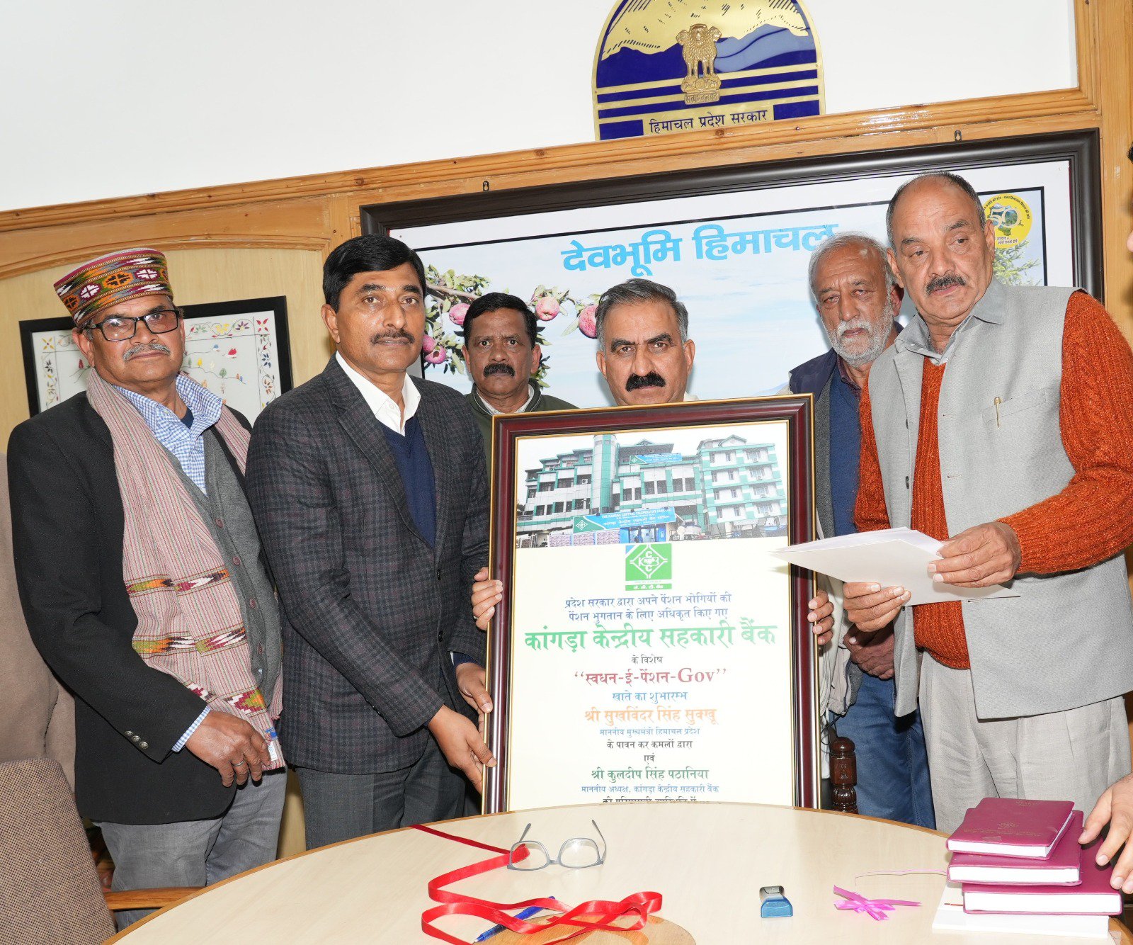 Chief Minister,Thakur Sukhvinder Singh Sukhu launched UPI and ‘Swadhan-e-pension-Gov’ services for Kangra Central Cooperative Bank, here today.