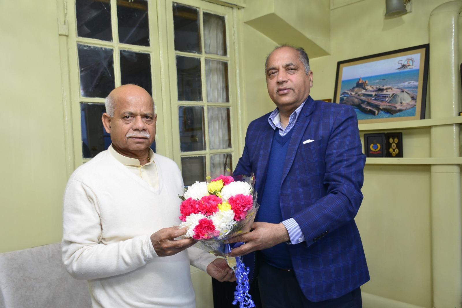 जय राम ठाकुर ने उनका कुशलक्षेम पूछा और उनके स्वस्थ होने पर प्रसन्नता व्यक्त की।