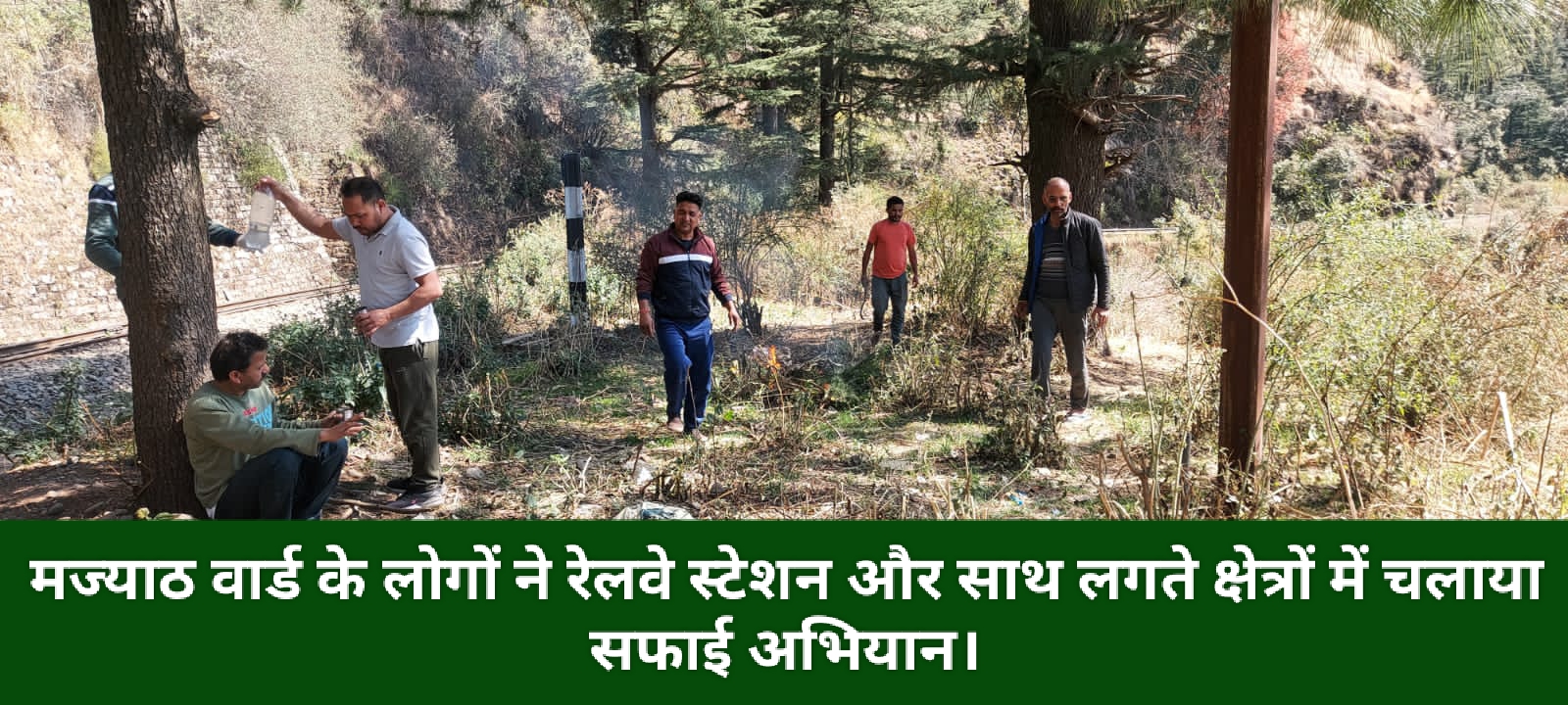 शिमला के मज्याठ वार्ड के अंतर्गत आने वाली जतोग रेलवे स्टेशन लाइन पर वार्ड के निर्वतमान पाषर्द दिवाकर देव शर्मा की अगुवाई में सफाई अभियान चलाया गया,इस मौके पर स्थानीय लोगों खासकर युवाओं ने रेलवे लाइन व साथ लगते क्षेत्र में साफ सफाई की,इधर उधर बिखरे सूखे कूड़े को खुले में जलाकर नष्ट किया गया।