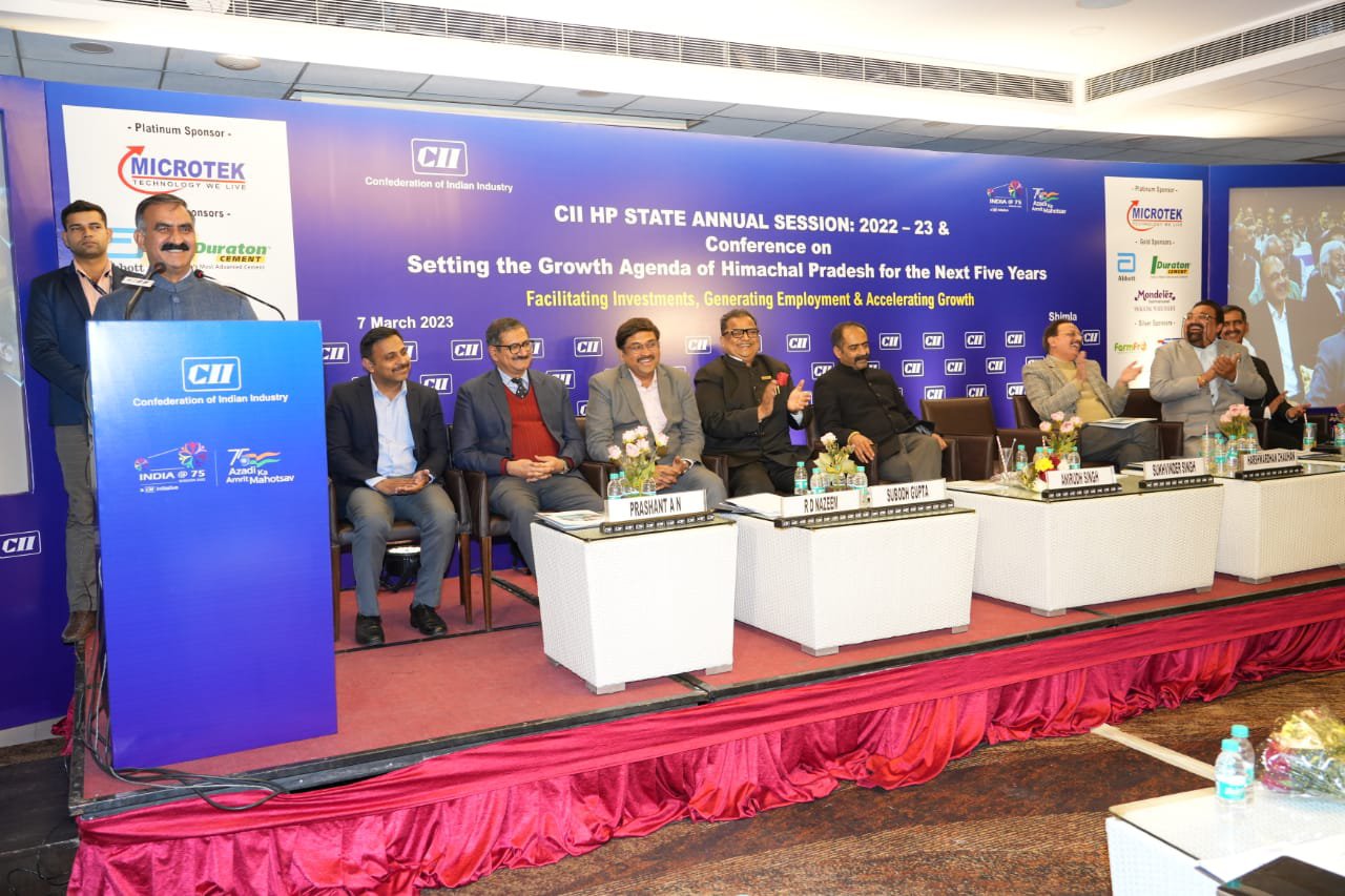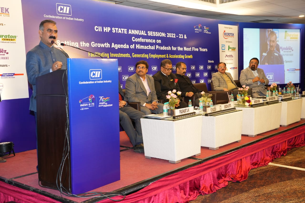 मुख्यमंत्री ठाकुर सुखविंदर सिंह सुक्खू ने भारतीय उद्योग परिसंघ (सीआईआई) हिमाचल प्रदेश के वार्षिक अधिवेशन-2022-23 तथा हिमाचल प्रदेश के लिए आगामी पांच वर्षों का विकास एजेंडा विषय पर आयोजित अधिवेशन की अध्यक्षता की। इसमें निवेश को सुविधा,रोजगार सृजन एवं विकास को गति देते हुए उन्नत हिमाचल पर चर्चा की गई।मुख्यमंत्री ने कहा कि प्रदेश सरकार व्यवस्था परिवर्तन के संकल्प के साथ कार्य कर रही है और प्रदेश में निवेश मित्र वातावरण प्रदान करने के लिए ठोस कदम उठाए जा रहे हैं।उन्होंने कहा कि उद्यमियों का उन्नत हिमाचल के निर्माण में अहम योगदान है और राज्य सरकार उनकी समस्याओं का त्वरित निदान कर उन्हें बेहतर सुविधाएं प्रदान करने के लिए कृतसंकल्प है।उन्होंने कहा कि प्रदेश में उद्योगों की स्थापना तथा अधिक से अधिक निवेश आकर्षित करने के लिए प्रक्रियाओं का सरलीकरण किया जा रहा है।उन्होंने कहा कि धारा 118 से संबंधित स्वीकृतियों को समयबद्ध करने के लिए सरकार ठोस कदम उठा रही है।इसके लिए एक इन्वेस्टमेंट ब्यूरो की स्थापना भी की जा रही है जिसके माध्यम से निवेश के लिए सभी स्वीकृतियां एक ही स्थान पर प्राप्त हो सकेंगी।प्रदेश में उद्योगों को न्यूनतम दरों पर 24 घंटे बिजली उपलब्ध करवाई जा रही है।उन्होंने आग्रह किया कि प्रदेश में उद्योगों की स्थापना को भी समयबद्ध करें ताकि उद्योग जगत एवं प्रदेश तथा यहां की जनता को शीघ्र इनका लाभ मिल सके। उन्होंने कहा कि उद्योग जगत खुले मन से कार्य करे।मुख्यमंत्री ने कहा कि आने वाले बजट में हिमाचल को प्रगति के पथ पर ले जाने के लिए सरकार का दृष्टिकोण नजर आएगा।राज्य सरकार पर्यटन क्षेत्र को विशेष प्राथमिकता प्रदान कर रही है। उन्होंने कहा कि प्रदेश को वर्ष 2025 तक हरित ऊर्जा राज्य बनाने का लक्ष्य रखा गया है।इसके दृष्टिगत आगामी तीन वर्षों में राज्य ने ग्रीन हाइड्रोजन अपनाने का लक्ष्य रखा है और यह उद्योगों की जरूरतों को भी पूरा करेगा।प्रदेश में इलेक्ट्रिक वाहनों के संचालन को प्राथमिकता प्रदान करते हुए इसके लिए आधारभूत ढांचा भी विकसित किया जा रहा है।उन्होंने कहा कि राज्य में रेल सम्पर्क तथा सड़कों का विस्तारीकरण करने पर विशेष बल दिया जा रहा है।इससे उद्योगों को कच्चे माल की ढुलाई एवं तैयार उत्पादों के परिवहन में सुविधा होगी।उन्होंने कहा कि प्रदेश सरकार हमेशा उद्योगों के हितों की रक्षा के लिए कृतसंकल्प है और सरकार के सक्रिय हस्तक्षेप से हाल ही में बरमाणा तथा दाड़लाघाट में उपजे ढुलाई दरों के विवाद का सर्वमान्य हल संभव हुआ है।मुख्यमंत्री ने इस अवसर पर धारा 118 से संबंधित विभिन्न मामलों को लेकर उद्योगपतियों से संवाद भी किया और मौके पर ही उनके निस्तारण के लिए निर्देश भी जारी