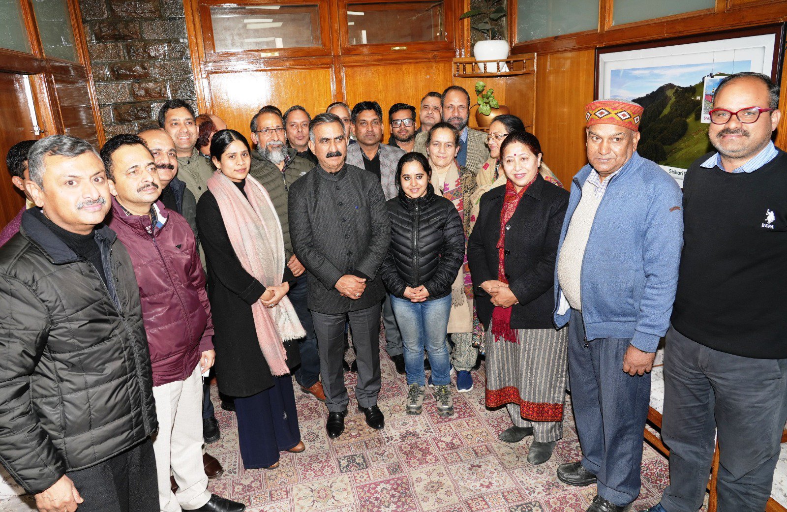 The officers and officials of the Information and Public Relations Department greeted Chief Minister, Thakur Sukhvinder Singh Sukhu on the eve of his 59th birthday here today.Felicitating the Chief Ministeron the occasion,KiranBhadana,Director, Information and Public Relations wished him good fortune,great health and happiness.