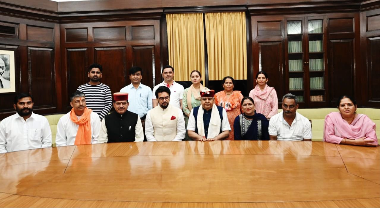 Shimla:हिमाचल प्रदेश के हमीरपुर ज़िले के ज़िला परिषद सदस्यों ने नई दिल्ली में उपराष्ट्रपति जगदीप धनखड़ से मुलाकात की।इस दौरान हमीरपुर से सांसद व केंद्रीय सूचना एवं प्रसारण और युवा एवं खेल मंत्री अनुराग सिंह ठाकुर भी मौजूद रहे।