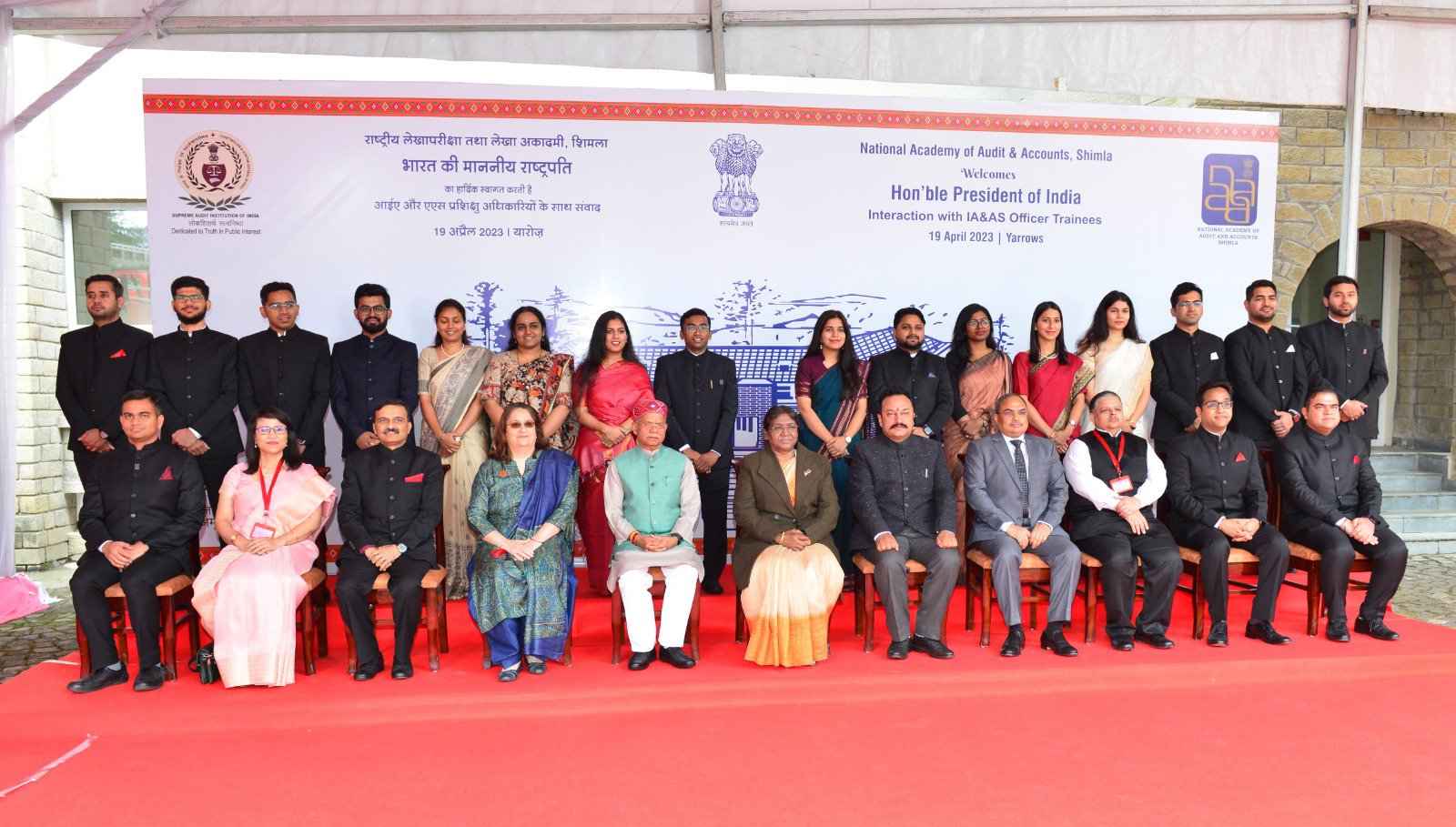 President,Smt.Droupadi Murmu attended the Interactive Programme with IA&AS Officers Trainees organised by the National Academy of Audit & Accounts,Shimla at YARROWS in Shimla on Wednesday.