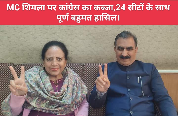 Shimla नगर निगम में कांग्रेस की एकतरफा जीत हुई है। 34 वार्डों में से कांग्रेस ने 24 वार्डों में जीत हासिल कर टाऊन हाल पर कब्जा कर लिया है।कांग्रेस निगम की सत्ता से पिछले एक दशक से बाहर है,लेकिन अब कांग्रेस ने प्रचंड जीत के साथ वापसी की है,जबकि भाजपा केवल 9 सीटों पर ही सिमट गई है।इसमें से 7 सीटों पर भाजपा की महिला पार्षद जीत कर आई हैं।वहीं माकपा केवल वामपंथियों का गढ़ समरहिल वार्ड को बचाने में ही कामयाब हुई है।जबकि आम आदमी पार्टी पहली बार शिमला नगर निगम चुनाव में उतरी थी।आप ने 21 सीटों पर अपने उम्मीदवार उतारे थे,जो अपनी जमानत तक नहीं बचा पाए हैं।वहीं नगर निगम चुनाव में 9 निर्दलीय चुनाव मैदान में उतरे थे।इनमें से कोई भी निर्दलीय उम्मीदवार जीत नहीं पाया