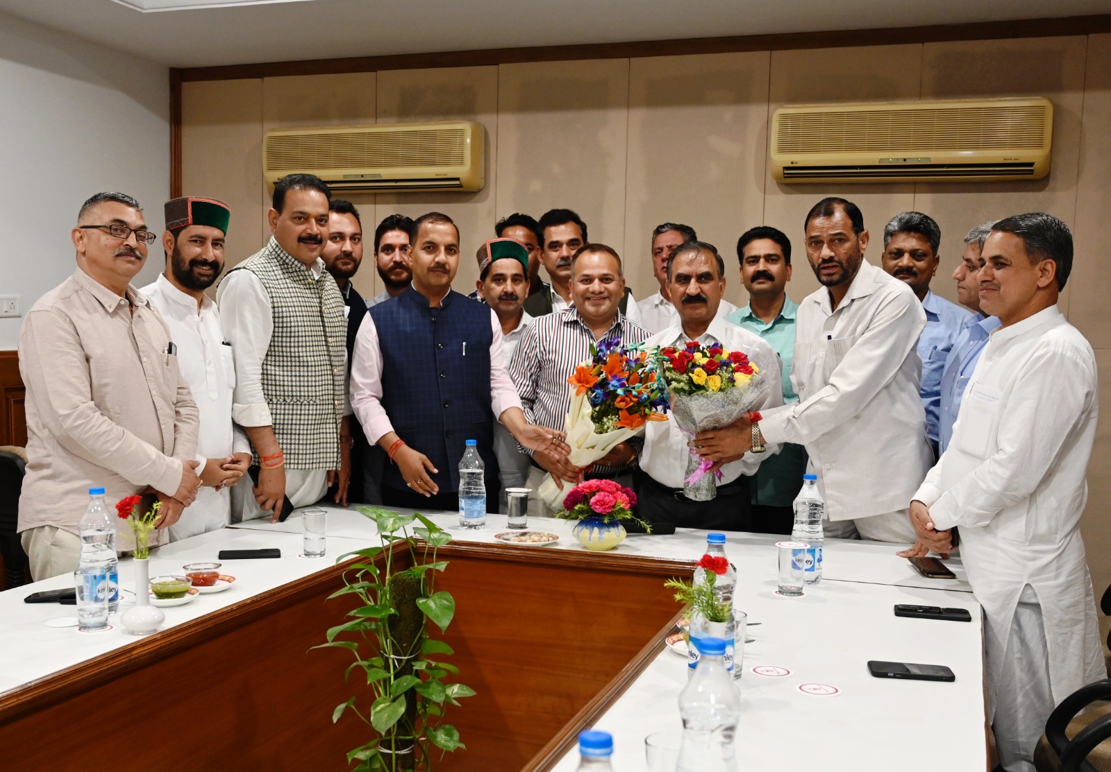 Chief Minister Thakur Sukhvinder Singh Sukhu met the HP Vidhan Sabha MLAs who are in Delhi to attend the three day long ‘Orientation Programme in Parliament at New Delhi today.The first time elected MLAs led by their President Kewal Singh Pathania called on the Chief Minister after the training session and had discussion on various issues of public interest.Kewal Singh Pathania also congratulated the Chief Minister for huge mandate to the party in Municipal Corporation elections,Shimla.