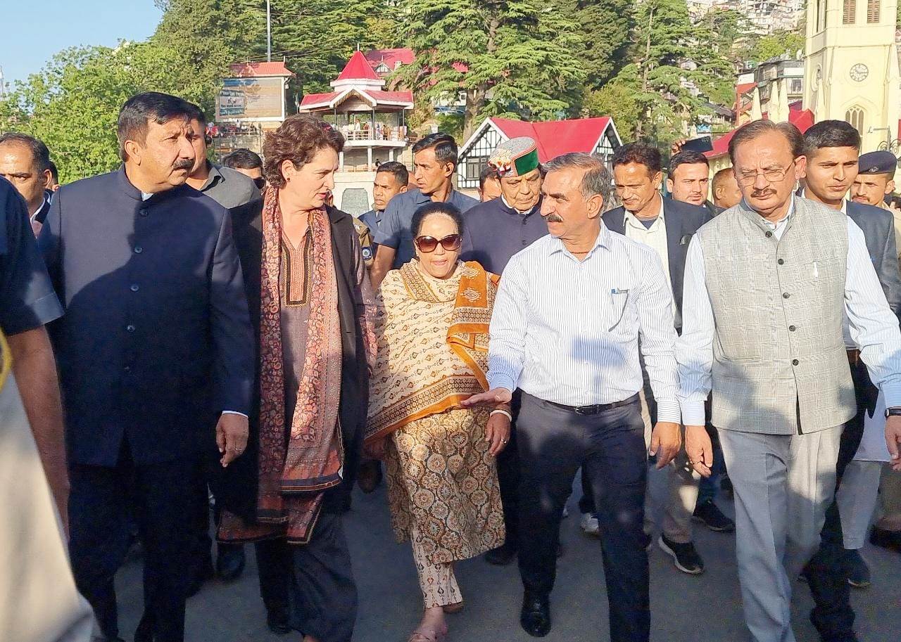 भारतीय राष्ट्रीय कांग्रेस की वरिष्ठ नेता प्रियंका गांधी और मुख्यमंत्री ठाकुर सुखविंदर सिंह सुक्खू ने उप-मुख्यमंत्री मुकेश अग्निहोत्री,सांसद व प्रदेश कांग्रेस अध्यक्ष प्रतिभा सिंह के साथ शिमला के ऐतिहासिक माल रोड में चहलकदमी की।