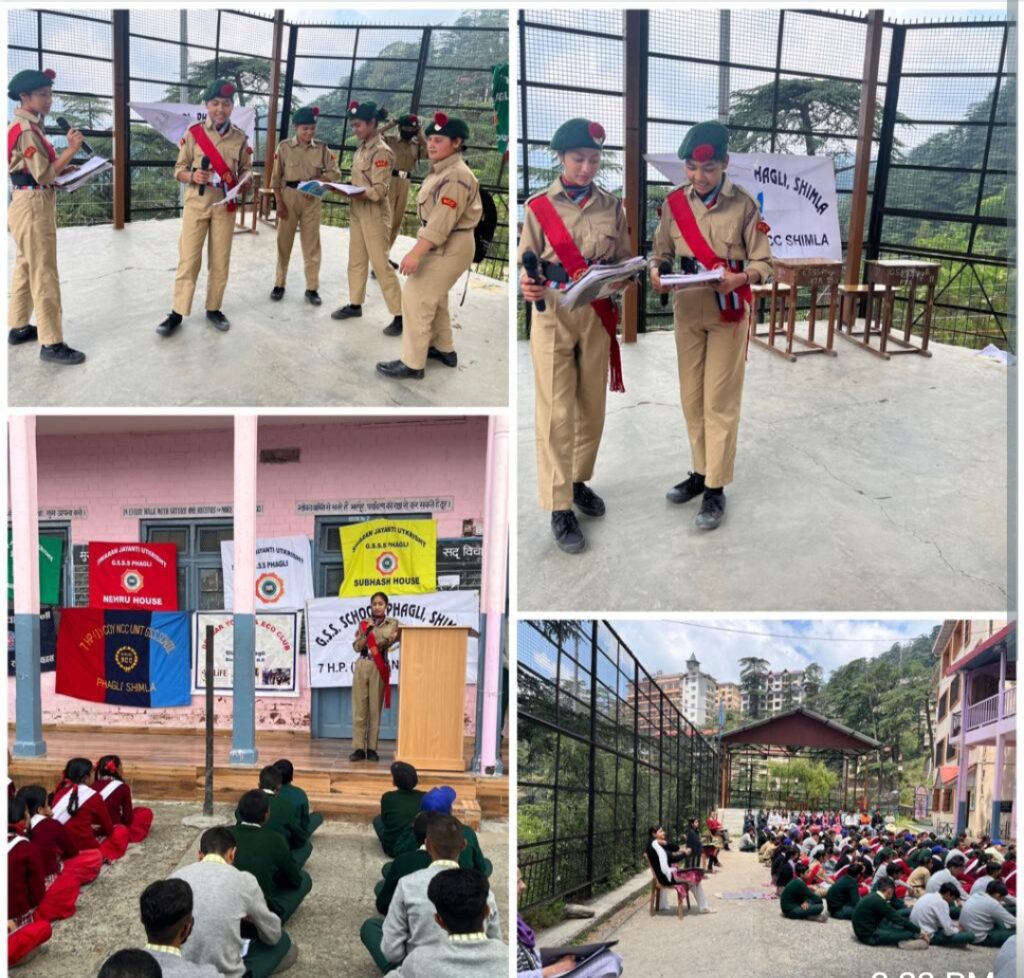 7 HP NCC Shimla की ओर से कमांडिंग ऑफिसर कर्नल डी.आर.गार्गी के दिशा-निर्देश पर 7 एचपी एनसीसी शिमला के अंतर्गत आने वाले स्कूलों में इन दिनों एनसीसी का पुनीत सागर अभियान और अभियान लाइफ के तहत पर्यावरण संरक्षण,नशाखोरी और प्लास्टिक निषेध पर जागरूकता अभियान चलाया जा रहा है।