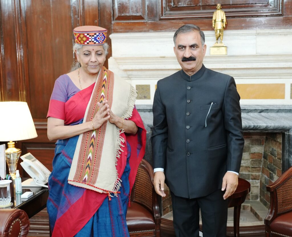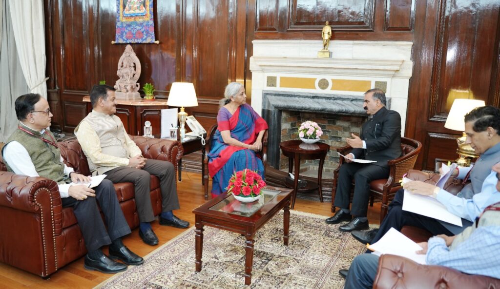 Chief Minister,Thakur Sukhvinder Singh Sukhu called on Union Finance Minister, Nirmala Sitharaman at New Delhi,He requested the Union Minister to review the decision to impose limit on new loans under externally aided projects and added that reconsidering this decision would help in development in various sectors.He further urged for intervention for expediting the signing of loan agreements of six proposals recommended by the Department of Economic Affairs for external funding.Chief Minister also requested for granting Rs 1000 crore and Rs 400 crore for Greenfield Airport in Mandi and the expansion of Kangra airport respectively as per the recommendations of 15th Finance Commission.Chief Minister also urged to review the decision to reduce the additional borrowing limit of state equal to the amount of the National Pension Scheme (NPS) contribution for the current financial year.Keeping in view the importance of National security, the Chief Minister urged for declaring the Bhanupali-Bilaspur-Leh rail project as hundred percent centrally funded or explore a revenue-sharing mechanism for the stretch upto Beri.