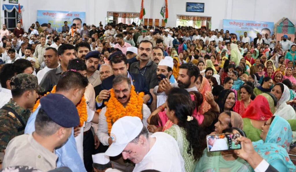 Earlier, on reaching Fatehpur, Chief Minister was given a rousing reception by MLA Fatehpur, Bhawani Singh Pathania, local congress leader and a massive road show was also taken out to welcome him.