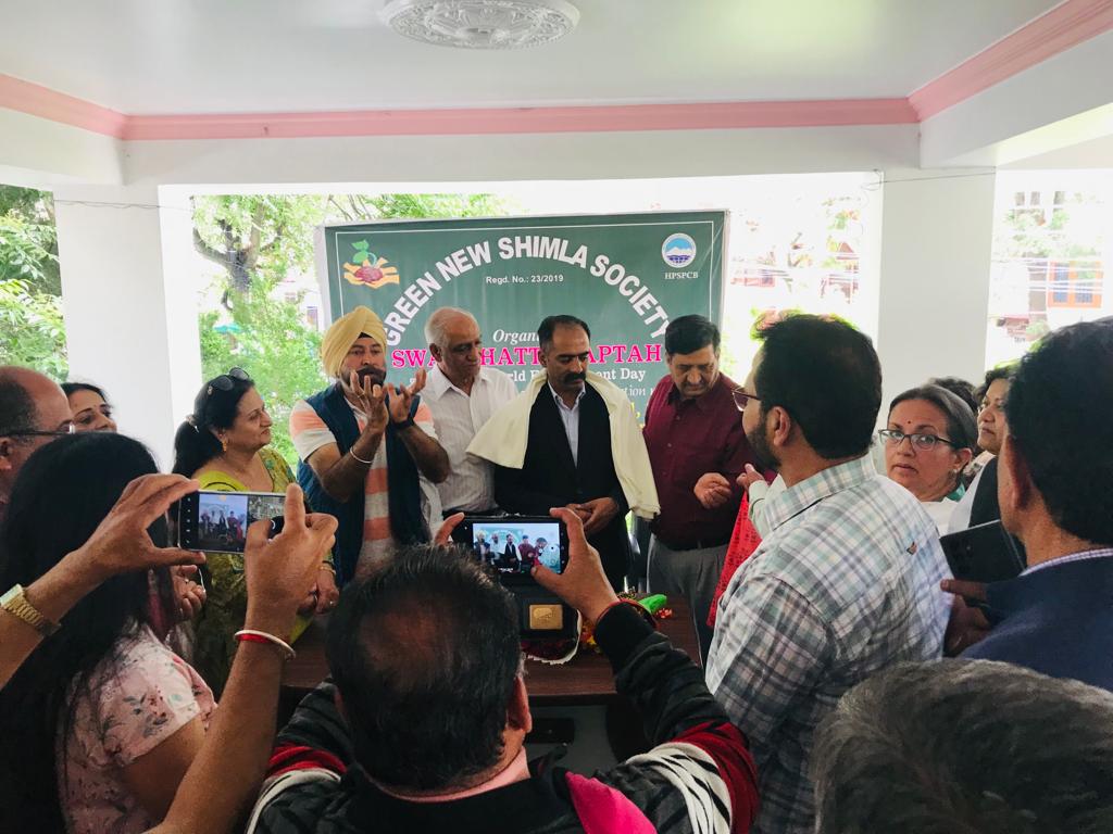 विश्व पर्यावरण दिवस के अवसर पर ग्रीन न्यू शिमला सोसायटी ने हिमाचल प्रदेश स्टेट पलयूशन कंट्रोल बोर्ड व नगर निगम शिमला के सहयोग से सेक्टर एक से ग्रामीण एवं पंचायती राज मंत्री राणा अनिरुद्ध सिंह की उपस्थितथी में सफाई अभियान चलाया।सोसायटी की अध्यक्ष माला सिंह ने विधायक अनिरुध सिंह का स्वागत जेड का पौधा देकर किया और व्यस्तता के बावजूद समय निकाल कर कार्यक्रम में शिरकत करने के लिए आभार जताया।सेक्टर 1 की आर डब्ल्यू ऐस के प्रधान इंजीनियर एस एन कपूर,उपाध्यक्ष विक्रम सिंह सेन और सचिव सुमन दत्ता ने शॉल एवं टोपी पहना कर मंत्री का कार्यक्रम में आने के लिए आभार प्रकट किया। माला सिंह ने मंत्री से हिमुडा रेज़ीडेन्ज़ के लिए एक फ्री पार्किंग और न्यूशिमला के लिए विकल्प मार्ग की मांग उठाई।उन्होंने न्यू शिमला को प्लास्टिक मुक्त करने का आह्वान किया।