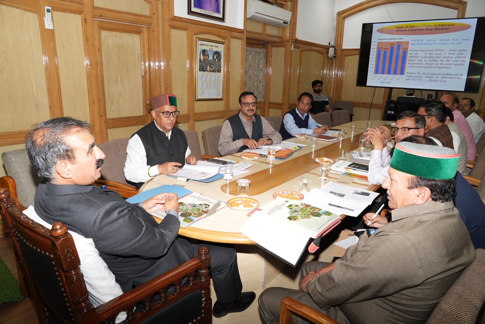 CM ठाकुर सुखविंदर सिंह सुक्खू ने वन विभाग एवं हिमाचल प्रदेश राज्य वन विकास निगम की समीक्षा बैठक की अध्यक्षता की।इस अवसर पर उन्होंने कहा कि राज्य के लिए राजस्व अर्जित करने के दृष्टिगत वन भूमि से सूखे पेड़ों का समयबद्ध कटान आवश्यक है क्योंकि कुछ समय के उपरान्त यह नष्ट हो जाते हैं।उन्होंने अधिकारियों को पेड़ों के प्रभावी चिन्हांकन,निष्कर्षण और निपटारा सुनिश्चित करने के लिए एक मानक संचालन प्रक्रिया (एसओपी) तैयार करने के निर्देश दिए।उन्होंने इमारती लकड़ी की ऑनलाइन बिक्री के लिए एक वेबसाइट विकसित करने पर भी बल दिया।मुख्यमंत्री ने कहा कि वर्तमान में,राज्य में वन भूमि पर लगभग 86,874 सूखे एवं क्षतिग्रस्त पेड़ हैं,जिनसे लगभग 64,000 क्यूबिक मीटर इमारती लकड़ी का उत्पादन होने की उम्मीद है।उन्होंने वन भूमि पर इन पेड़ों के समय पर निष्कर्षण और निपटारे की सुविधा के लिए मासिक आधार पर चिन्हांकन सुनिश्चित करने पर बल दिया। उन्होंने कहा कि इस दिशा में व्यवस्थित प्रयासों से इमारती लकड़ी को प्रदेश के राजस्व का एक मूल्यवान स्रोत बनाने की दिशा में यह कारगर सिद्ध होगा।उन्होंने कहा कि समय पर सूखे पेड़ों की निकासी नहीं होने से प्रदेश को राजस्व की हानि होती है।