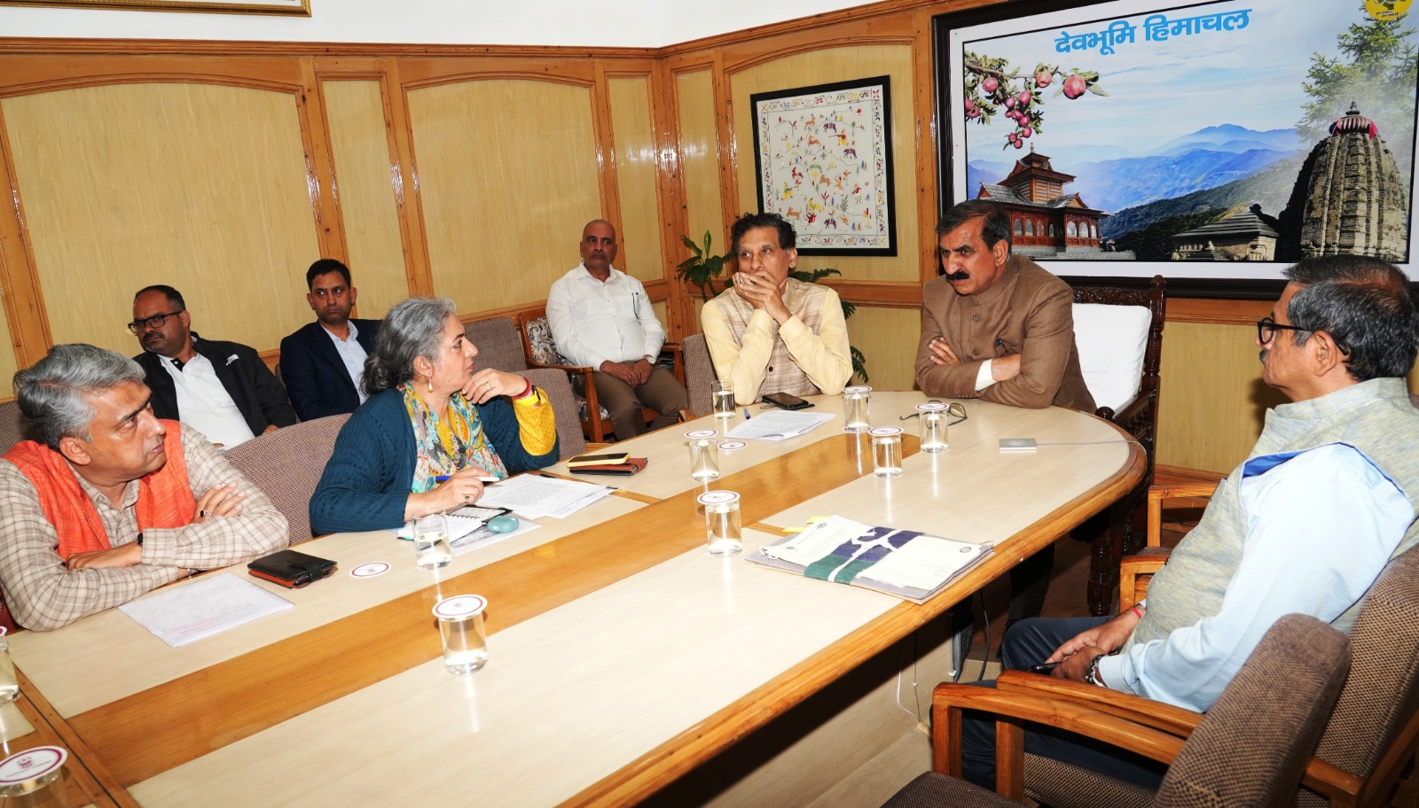 Chief Minister,Thakur Sukhvinder Singh Sukhu here today held a virtual meeting with all Deputy Commissioners and Superintendents of Police to review the law and order situation in context of the Salooni incident in Chamba district. He directed to keep strict vigil to maintain law and order situation in their respective districts.Chief Secretary, Prabodh Saxena, Principal Secretary Home,Bharat Khera, OSD to the Chief Minister,Gopal Sharma, ADGPs, Satwant Atwal and Abhishek Trivedi, IGP,Santosh Patial,Principal Private Secretary to the Chief Minister, Vivek Bhatia and other senior officers were also present on the occasion.