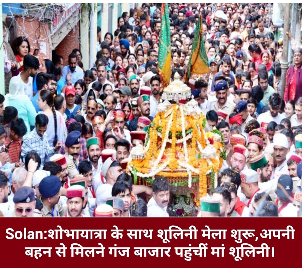 Solan:राज्य स्तरीय तीन दिवसीय मां शूलिनी मेला शुक्रवार को विधिवत पूजा-अर्चना के साथ शुरू हुआ,मां शूलिनी की शोभायात्रा के दौरान विभिन्न झांकियों ने सभी को मोहित किया।इस बार शोभायात्रा में गणेश,माखनचोर,शिव और मां काली, हनुमान,भगवान राम व राधा-कृष्ण सहित अन्य झांकियां शामिल रहीं।इस दौरान पहाड़ी वाद्ययंत्र,बैगपाइपर, बैंड-बाजा व सपेरा बीन के अतिरिक्त विशेष ढोलियों की टीमों ने शोभायात्रा को चार चांद लगा दिए।शोभायात्रा करीब डेढ़ बजे मंदिर परिसर से शुरू हुई।इस दौरान लाखों की संख्या में श्रद्धालुओं ने मां के दर्शन किए।शोभायात्रा करीब अढ़ाई बजे पुरानी कचहरी के पास पहुंची।यहां पर स्वास्थ्य मंत्री डाॅ. धनीराम शांडिल ने मां की पालकी पर पुष्पवर्षा कर स्वागत किया।पहले मुख्यमंत्री द्वारा मां की शोभायात्रा का यहां पर स्वागत किया जाना था लेकिन अपरिहार्य कारणों से मुख्यमंत्री नहीं पहुंच सके।मां के दर्शनों के लिए शहर में भारी हुजूम उमड़ा और शहर में तिल धरने की भी जगह नहीं थी।इस बार मां की पालकी थोड़ी देर के लिए गंज बाजार में भी रुकी और इसके बाद बाजार से होते हुए पुराने बस अड्डे तक पहुंची।पुराने बस अड्डे पर लोगों ने मां के दर्शन किए।इसके बाद मां शूलिनी गंज बाजार स्थित अपनी बहन से मिलने उनके मंदिर पहुंचीं।तीन दिन तक यहां आतिथ्य के बाद शूलिनी मां वापस अपने मंदिर लौट जाएंगी।