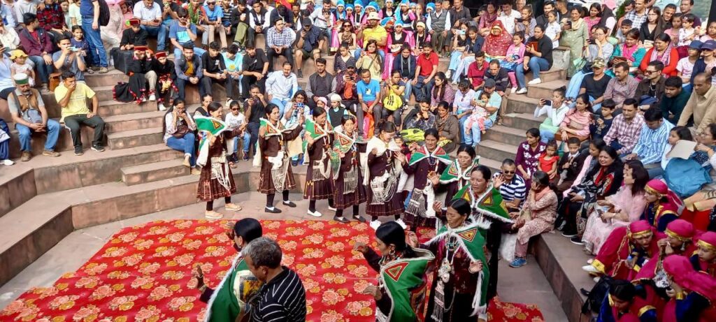 Shimla:भाषा एवं संस्कृति विभाग हिमाचल प्रदेश एवं जिला प्रशासन शिमला के संयुक्त तत्वावधान में आयोजित किए जा रहे पर्यटक उत्सव के तहत हिमाचल की समृद्ध सांस्कृतिक विरासत से पर्यटकों को रूबरू करवाने के लिए गेयटी के ओपन थिएटर में जिला लाहुल-स्पीती के कलाकारों ने स्पीती क्षेत्र के पारम्परिक शायरो व जाचुन लोक नृत्य से लोगो को मन्त्र मुग्ध किया।