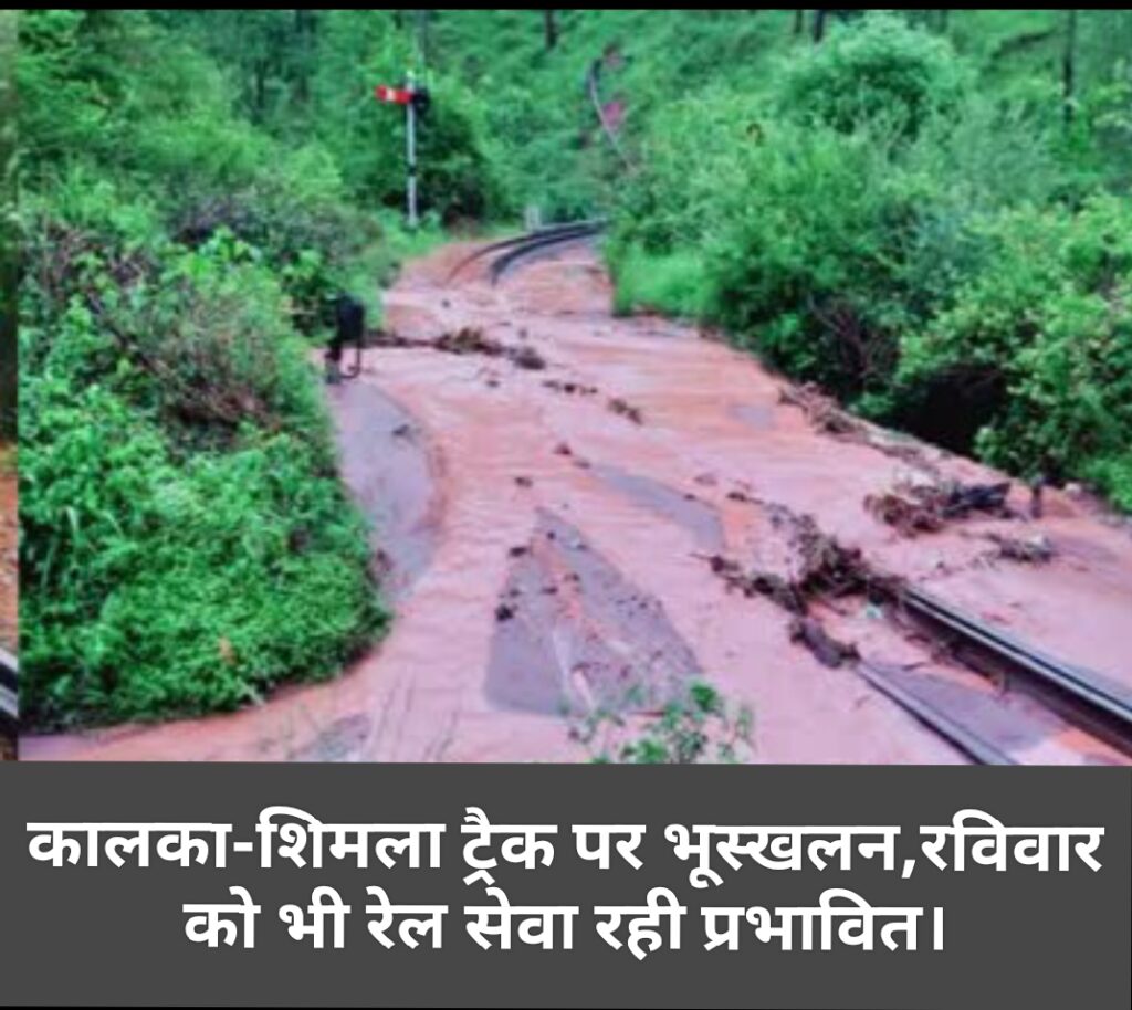विश्व धरोहर कालका-शिमला रेल मार्ग पर भूस्खलन के चलते रविवार को भी कालका से शिमला और शिमला से कालका जाने वाली सभी ट्रेनों को रद्द कर दिया गया।रेलवे ट्रैक को बहाल करने का कार्य चला हुआ है।बता दें कि शनिवार को कालका-शिमला रेल मार्ग पर भूस्खलन के चलते सभी ट्रेनों को स्थगित कर दिया गया था।देर शाम तक ट्रैक क्लीयर करने के बाद रविवार सुबह कालका रेलवे स्टेशन से सुबह के समय साढ़े 3 बजे चलने वाली पैसेंजर टॉय ट्रेन को शिमला के लिए रवाना की गई लेकिन जतोग और तारा देवी स्टेशन के बीच भूस्खलन के चलते उक्त ट्रेन भी आधे घंटे से ज्यादा देर तक रास्ते में खड़ी रही।इस कारण सैलानियों को कठिनाइयों का सामना करना पड़ा।इसके बाद ट्रैक को क्लीयर कर ट्रेन को शिमला के लिए रवाना किया गया।