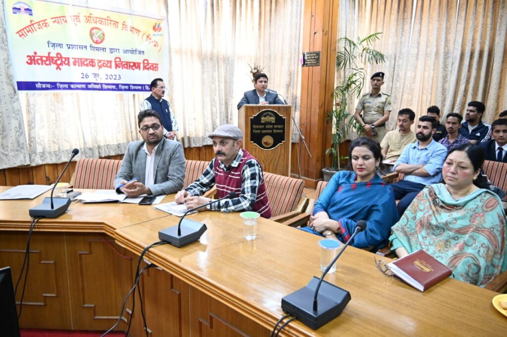 DC Shimla आदित्य नेगी ने बचत भवन में सामाजिक न्याय एवं अधिकारिता विभाग एवं जिला प्रशासन के संयुक्त तत्वावधान में अंतर्राष्ट्रीय मादक द्रव्य निवारण दिवस के उपलक्ष पर आयोजित जिला स्तरीय कार्यक्रम की अध्यक्षता की।उपायुक्त ने अपने संबोधन में कहा कि नशा एक सामाजिक बुराई है और इस बुराई से लड़ने के लिए समाज के सभी लोगों को एकजुट होना होगा तभी हम इस अभिशाप को जड़ से खत्म कर सकते हैं।नशा शरीर के लिए जहां खतरनाक है,वहीं अपराध का भी मुख्य कारण है।उन्होंने कहा कि हम सभी को अपने समाज में रह रहे प्रत्येक व्यक्ति को नशे के खिलाफ जागरूक करने की भी आवश्यकता है ताकि बढ़ते नशे के चलन को रोका जा सके।उन्होंने कहा कि नशीले पदार्थों के निवारण के लिए प्रत्येक वर्ष 26 जून को अंतर्राष्ट्रीय नशा मुक्ति दिवस मनाया जाता हैं।संयुक्त राष्ट्र महासभा ने अपने एक प्रस्ताव में 7 दिसम्बर 1987 से इसे मनाने का निर्णय लिया था।इसका उद्देश्य लोगों को नशे की बुरी आदत से छुटकारा दिलाना तथा उन्हें नशे से होने वाले दुष्प्रभाव से बचाना हैं।उन्होंने कहा कि कार्यक्रम के आयोजन से पूर्व जिला कल्याण अधिकारी कार्यालय द्वारा 19 से 25 जून तक पूरे सप्ताह नशे के दुष्प्रभाव के प्रति लोगों को जागरूक करने के उद्देश्य से विभिन्न गतिविधियों का आयोजन किया।उन्होंने कहा कि हम सभी को आज से नशे के खिलाफ प्रण लेने की आवश्यकता है ताकि आने वाली पीढ़ियों को नशे के चंगुल से बचाया जा सके।उपायुक्त ने उपस्थित सभी लोगों को इस दौरान नशा मुक्त हिमाचल अभियान की शपथ भी दिलाई।