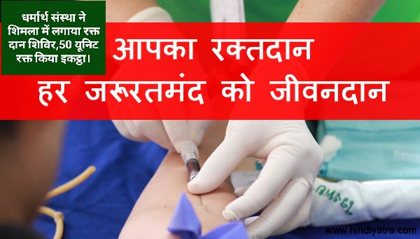 सामाजिक संस्था धर्मार्थ की ओर से शिमला के रिज मैदान में रक्त दान शिविर का आयोजन किया गया।