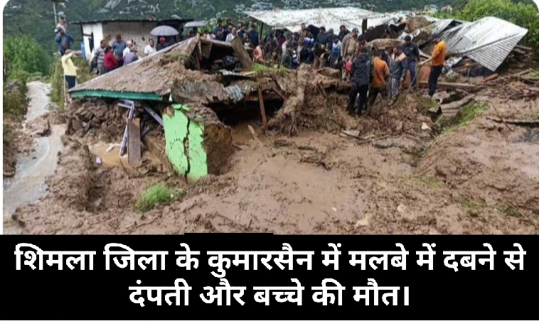 शिमला जिले के कुमारसैन में मकान गिर गया।मलबे में दबने से एक ही परिवार के तीन सदस्यों की मौत हो गई।