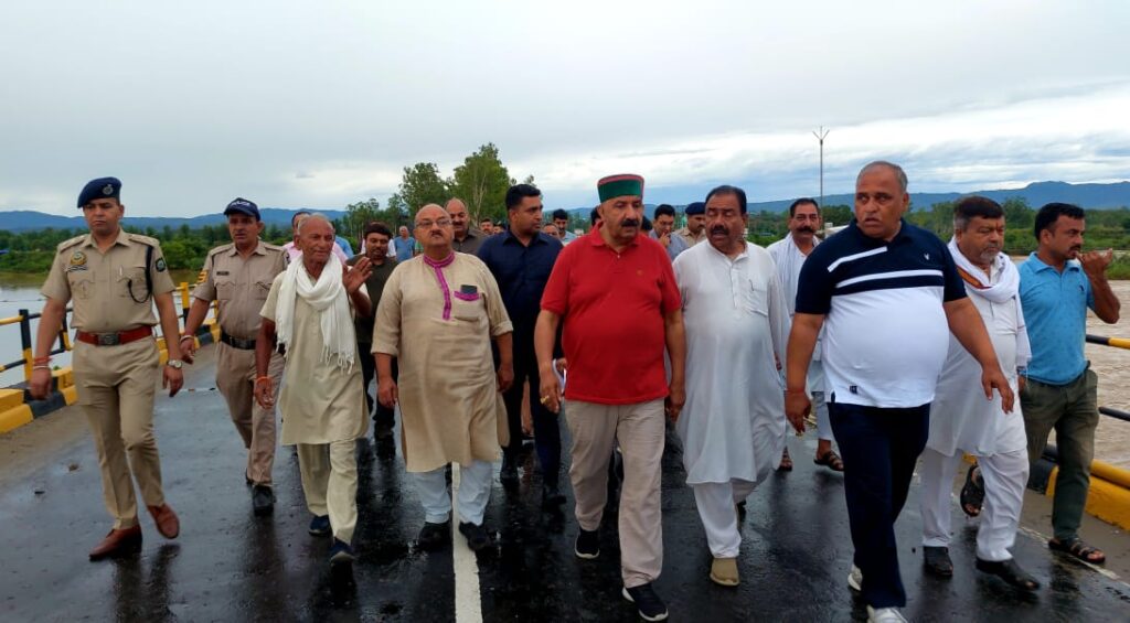 यह जानकारी उपमुख्यमंत्री मुकेश अग्निहोत्री ने 9 जुलाई को हुई भारी बारिश के कारण उना होशियारपुर मार्ग पर क्षतिग्रस्त घालुआल पुल के निरीक्षण के दौरान मीडिया को संबोधित करते हुए दी।उन्होंने बताया कि भारी बारिश के कारण हिमाचल पथ परिवहन निगम के 876 बस रूट प्रभावित हुए हैं तथा 403 बसे विभिन्न स्थानों पर फंस गई हैं।इसके अलावा प्रदेश भर में निजी संपत्ति को भी भारी नुकसान हुआ है तथा पूरे प्रदेश में सामान्य जनजीवन प्रभावित हैं।उप मुख्यमंत्री ने कहा कि आपदा के इस दौर में प्रदेशवासियों के जान माल की रक्षा करना प्रदेश सरकार की सर्वोच्च प्राथमिकता है तथा इस दिशा में सभी आवश्यक कदम उठाए जा रहे हैं।उन्होंने जिला प्रशासन को निर्देश दिए कि ऊना जिला में नदियों व खंडों के किनारे बसे प्रवासियों की सुरक्षा के लिए भी सभी प्रबंध किए जाएं तथा उन्हें सुरक्षित स्थानों पर ठहराया जाए।मुकेश अग्निहोत्री बताया कि समतल क्षेत्र होने के कारण ऊना जिला इस भारी बारिश से के कारण हुई तबाही से अधिक प्रभावित हुआ है तथा समतल क्षेत्रों में क्षेत्रवासियों को जलभराव की समस्या का सामना करना पड़ा है।उन्होंने बताया कि प्राकृतिक आपदा से प्रभावित क्षेत्रों के लोग दूरभाष के माध्यम से प्रशासन से संपर्क कर रहे हैं तथा पूरे जिला में उपायुक्त ऊना के निर्देशन में जिला आपदा प्रबंधन प्राधिकरण लोगों को यथाशीघ्र मदद मुहैया करवा रहा है।उपमुख्यमंत्री जिला के सभी अधिकारियों को निर्देश दिए की मुसीबत के इस दौर में राहत और बचाव कार्यों को को पूर्ण मुस्तैदी के साथ जारी रखें तथा 24 घंटे लोगों की सेवा के लिए उपलब्ध रहें।मुकेश अग्निहोत्री ने कहा कि आपदा के इस दौर में रामपुर हरोली पुल जिला के लोगों के लिए वैकल्पिक मार्ग के रूप में वरदान साबित हुआ है तथा यातायात के लिए घालूआल पुल के बंद होने के पश्चात लोग रामपुर हरोली पुल का भरपूर इस्तेमाल कर रहे हैं उन्होंने कहा कि ऊना जिला में सवां नदी सहित सहायक नदियों पर लगभग 1500 करोड़ पर खर्च किए गए हैं जिस कारण से भारी बारिश के कारण बाढ़ जैसी हालात की स्थिति में भी स्थिति नियंत्रण में है वरना जिला में 1988 जैसे हालात पैदा हो सकते थे।इस अवसर पर जिला कांग्रेस कमेटी के अध्यक्ष राणा रणजीत सिंह,जिला प्रशासन के अलावा विभिन्न विभागों के अधिकारी व कर्मचारी भी मौजूद थे।