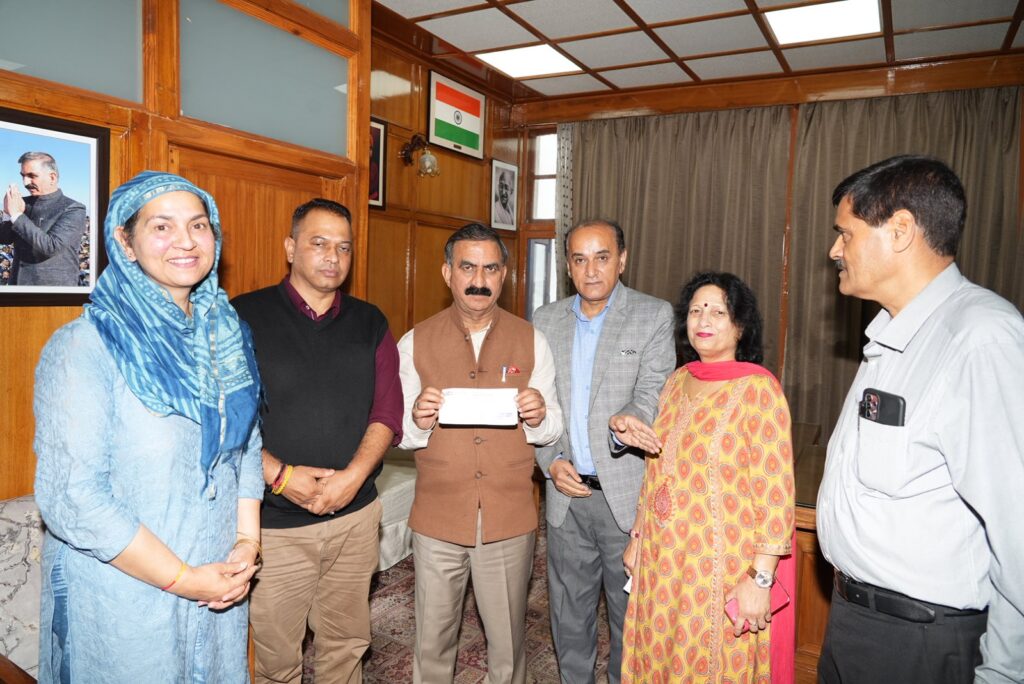 Shimla नगर निगम के महापौर सुरेंद्र चौहान और उप-महापौर उमा कौशल सहित अन्य पार्षदों ने मुख्यमंत्री ठाकुर सुखविंदर सिंह सुक्खू से भेंट की।राज्य में मूसलाधार बारिश के कारण बड़े पैमाने पर हुए नुकसान को ध्यान में रखते हुए महापौर और उप-महापौर ने अपना एक महीने का मानदेय ‘आपदा राहत कोष-2023’ के लिए प्रदान किया है।