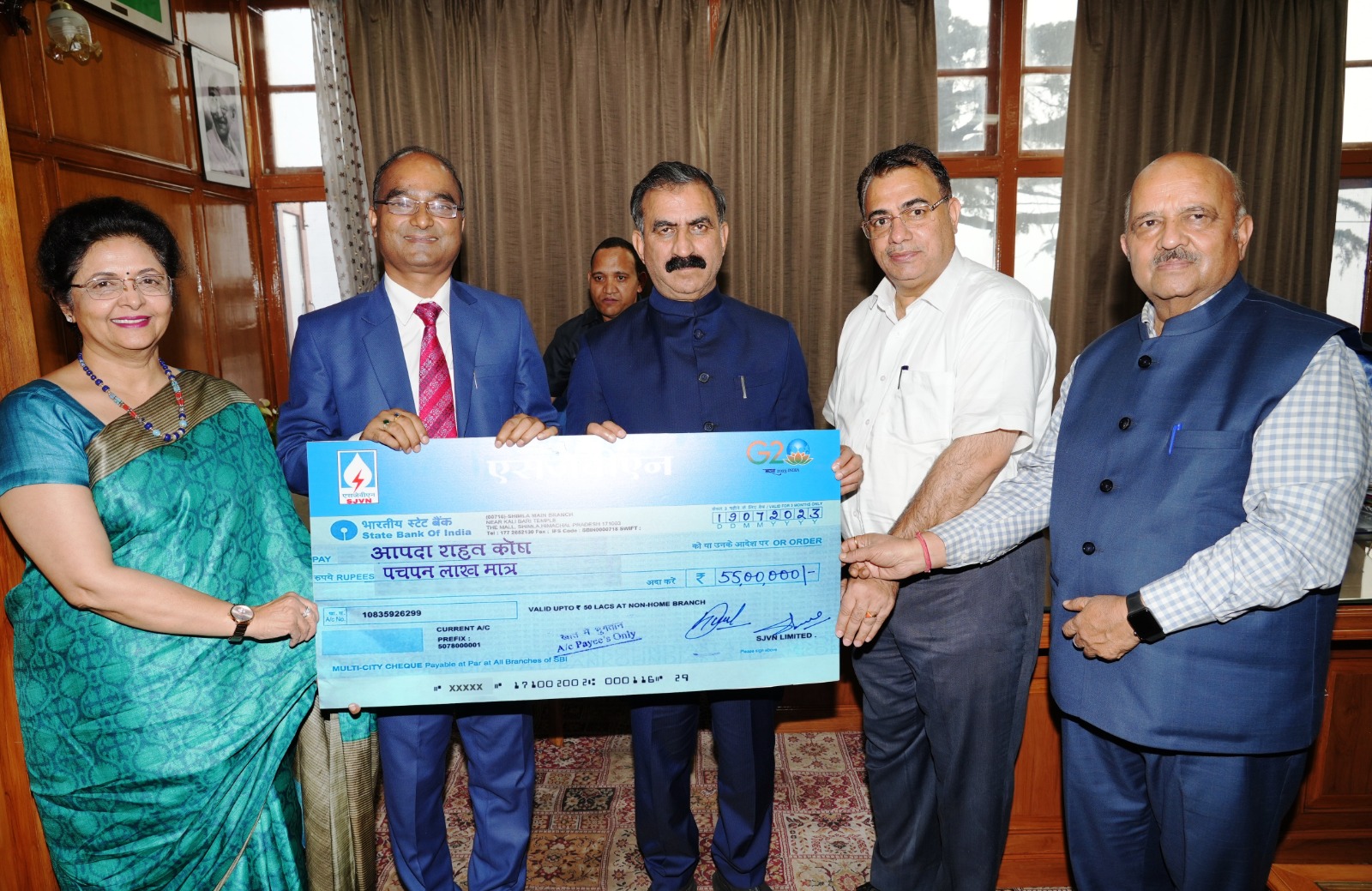 सतलुज जल विद्युत निगम के अध्यक्ष नंद लाल शर्मा ने निगम की ओर से बाढ़ प्रभावित परिवारों को सहायता प्रदान करने के दृष्टिगत आपदा राहत कोष-2023 के लिए मुख्यमंत्री ठाकुर सुखविंदर सिंह सुक्खू को 2,55,00,000 रुपये की राशि के चेक प्रदान किए।मुख्यमंत्री ने इस पुनीत कार्य के लिए आभार व्यक्त करते हुए कहा कि इस राशि से संकट की घड़ी में प्रभावित परिवारों को सहायता प्रदान करने में मदद मिलेगी।