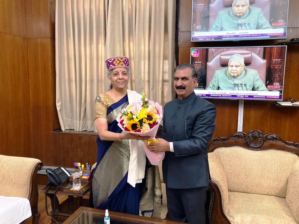 Chief Minister Thakur Sukhvinder Singh Sukhu called on Union Finance Minister Nirmala Sitharaman at New Delhi today.The Chief Minister requested for additional special central assistance from the Centre Government for accelerating the pace of asset creation and restoration in order to restore normalcy in the state.