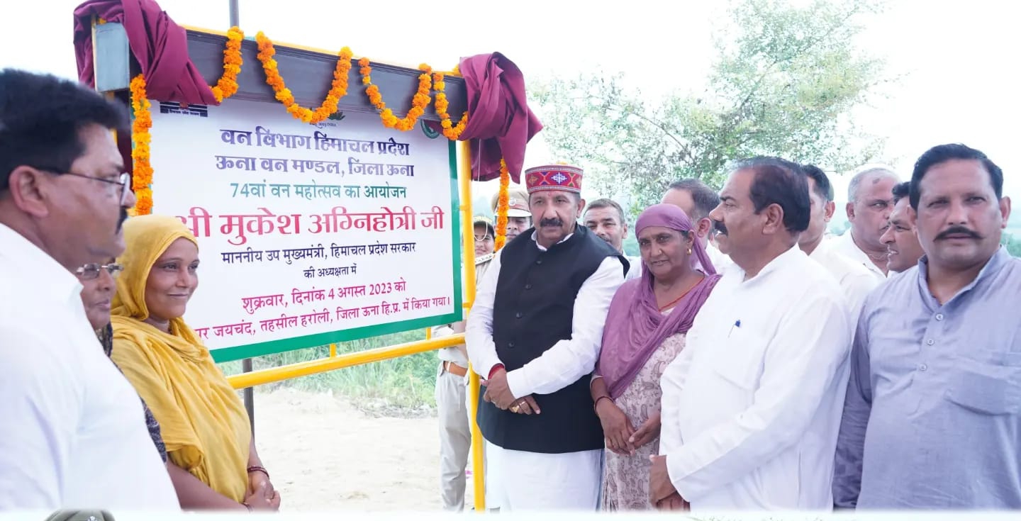 Una जिला में पौधारोपण को प्रोत्साहन देने के लिए जिला स्तरीय 74वां वन महोत्सव हिमाचल के अंतिम छोर की पंचायत गोंदपुर जयचंद में मनाया गया।कार्यक्रम में उप मुख्यमंत्री मुकेश अग्निहोत्री ने बत्तौर मुख्यतिथि शिरकत की। इस मौके पर उन्होंने आम का पौधारोपण किया।उपस्थित जनसमूह को संबोधित करते हुए उन्होंने कहा कि वन महोत्सव मात्र औपचारिकता नहीं होनी चाहिए बल्कि इस दौरान रोपित किए पौधों का संरक्षण करना भी हमारा मुख्य कर्त्तव्य होना चाहिए।उन्होंने कहा कि वन महोत्सव के तहत जिस स्थान पर पौधारोपण किया गया है वहां पर बाड़बंदी की जानी चाहिए ताकि पौधे सुरक्षित रहकर एक बडे़ पेड़ का आकार ले सके।इससे हमारी भावी पीढ़ी को एक स्वच्छ व स्वस्थ वातारण मिल सकेगा।