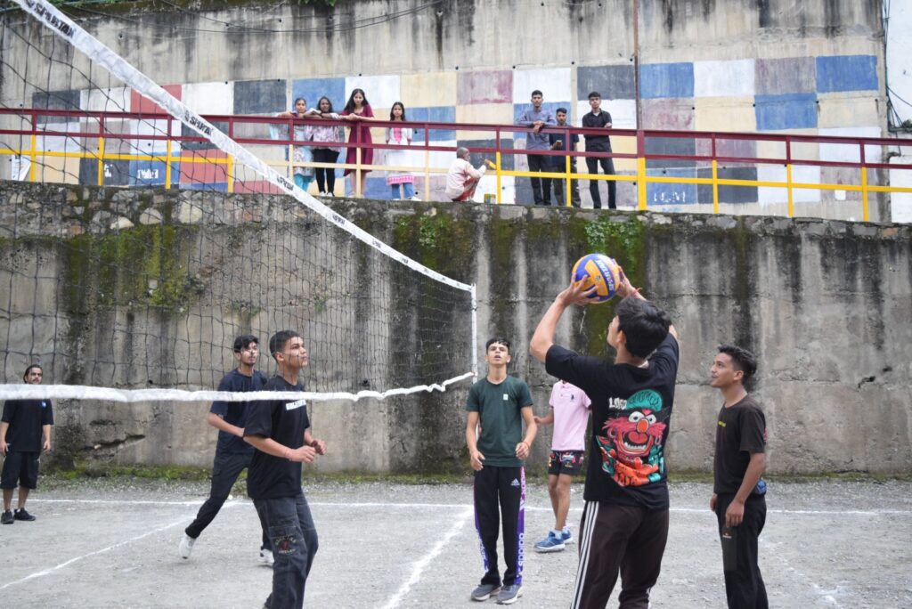 सांस्कृतिक कार्यक्रम के बाद डॉ.अंकित ठाकुर की अगुवाई में वॉलीबॉल और फुटबॉल खेलकूद प्रतियोगिता का आयोजन किया गया जिसमें नए छात्रों ने वरिष्ठ छात्रों की टीमों के साथ बढचकर भाग लिया।