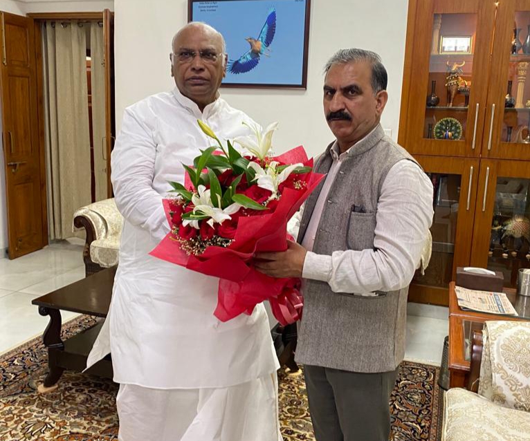 Chief Minister,Thakur Sukhvinder Singh Sukhu called on Indian National Congress President,Mallikarjun Kharge at New Delhi,He discussed various issues pertaining to the state with Sh.Kharge and apprised him about the devastation caused by floods and rains in the state and the relief and rescue operations conducted by the state government.The Chief Minister also apprised about the evacuation of tourists from Chandertaal (4300 meters) in Spiti, by his Ministers. He said that the state government was trying its best for restoring normalcy and added that he had taken up the matter with Prime Minister, Narendra Modi at New Delhi for providing immediate relief to the state.Sh.Kharge lauded the efforts of Sh.Sukhu for personally monitoring the relief and rescue operations on the spot.Sh.Sukhu also informed Sh.Kharge about his meeting with BJP National President, J.P Nadda,Home Minister,Raksha Mantri and Finance Minister,wherein,he discussed about various issues of the state.