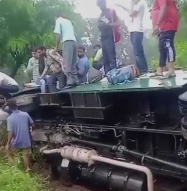 Kangra:हिमाचल प्रदेश के जिला कांगड़ा में बड़ा हादसा हुआ लेकिन गनीमत यह रही कि जानी नुकसान नहीं हुआ। मंगलवार सुबह जवाली के भनेई में यह बड़ा हादसा हुआ है। जहां HRTC बस सड़क पर पलटी है।हालांकि इस हादसे में कोई ज़्यादा नुक़सान नहीं हुआ है।देहरा डिपो की यह बस पठानकोट से शिमला की ओर जा रही थी जो ज्वाली के समीप भनेई में पलट गई। स्थानीय लोगों की सहायता से बस से सभी यात्रियों को सुरक्षित बाहर निकाला गया है।हालांकि हल्की चोटें जरूर पहुंची है।बस में 35 यात्री सवार थे। जानकारी के अनुसार बस पलटने का मुख्य कारण तेज रफ्तार बताया जा रहा है।