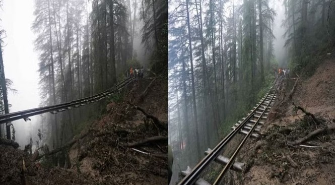 Himachal Pradesh की राजधानी शिमला में समरहिल के पास भूस्खलन के चलते विश्व धरोहर कालका-शिमला रेल मार्ग बुरी तरह क्षतिग्रस्त हो गया है।रेल पटरी हवा में लटक गई है।120 साल पुराना ऐतिहासिक कालका-शिमला रेलवे मार्ग पर ट्रेनों की आवाजाही ठप हो गई हैं।यह पहली बार है जब कालका-शिमला ट्रैक को इतना बड़ा नुकसान हुआ है। 1898 और 1903 के बीच यह रेल लाइन तैयार की गई।9 नवंबर,1903 को कालका-शिमला रेलमार्ग की शुरुआत हुई थी।1896 में इस रेल मार्ग को बनाने का कार्य दिल्ली-अंबाला कंपनी को सौंपा गया था।रेलमार्ग कालका स्टेशन 656 (मीटर) से शिमला (2,076) मीटर तक जाता है।96 किमी लंबे रेलमार्ग पर 18 स्टेशन है।कालका-शिमला रेलमार्ग को केएसआर के नाम से भी जाना जाता है।1921 में राष्ट्रपिता महात्मा गांधी ने भी इस मार्ग से यात्रा की थी।