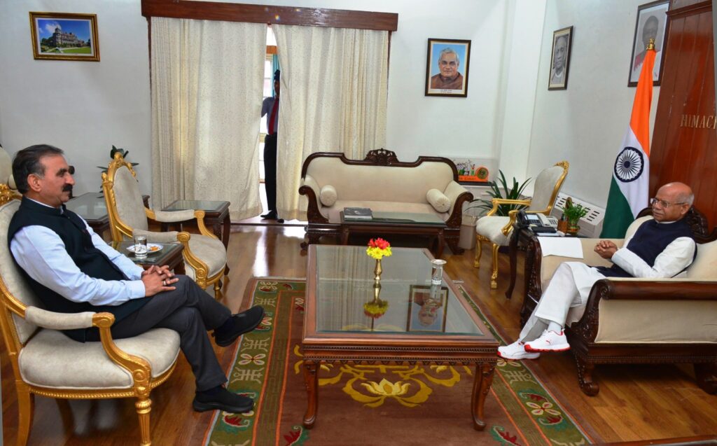 Chief Minister Thakur Sukhvinder Singh Sukhu called on Governor Shiv Pratap Shukla at Raj Bhavan,In his courtesy call, the Chief Minister apprised the Governor about the loss of life and property due to widespread floods,heavy rains,cloudbursts and landslides in the State.He also briefed about the relief works being carried out by the State Government in the affected areas and the steps taken for the rehabilitation of the affected families.He said that gradually the situation was returning to normal and the road and transport system was being made normal.The Chief Minister also informed the Governor about the forthcoming monsoon session of the Himachal Pradesh Legislative Assembly in Shimla from 18th to 25th September.