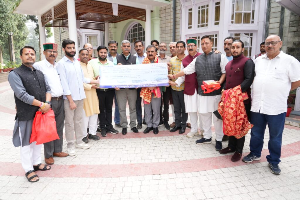 शक्तिपीठ श्री ज्वालामुखी मंदिर न्यास की ओर से विधायक संजय रतन ने आपदा राहत कोष के लिए पांच करोड़ रुपये का चेक मुख्यमंत्री ठाकुर सुखविंदर सिंह सुक्खू को भेंट किया।मुख्यमंत्री ने इस पुनीत कार्य के लिए मंदिर न्यास का आभार व्यक्त किया।इस अवसर पर एडवोकेट सर्वेश रतन, उपमण्डलाधिकारी डॉ.संजीव शर्मा,मंदिर अधिकारी अनिल कुमार सोंधी,नगर परिषद अध्यक्ष धर्मेंद्र शर्मा,मंदिर न्यास के प्रधान दिव्यांशु भूषण दत्त,उप प्रधान कपिल शर्मा,न्यासी उदय शंकर,अविनेंद्र,सुधीर वैद्य,दीपक,अश्वनी,जितेश,वीरेंद्र शर्मा,सुमेश,तानी और राहुल भी उपस्थित थे।